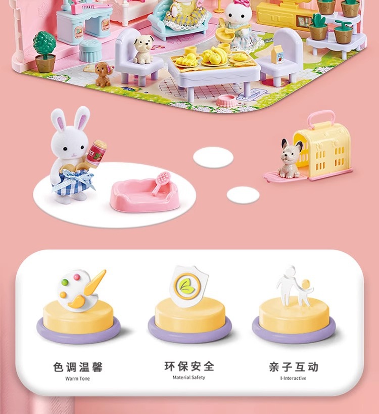 小兔子玩具女孩仿真动物宠物屋5-8岁儿童玩偶过家家城堡房子6公主