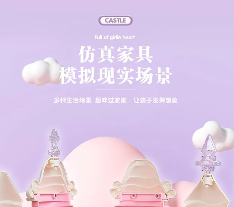 お姫様の家の城の別荘の女の子は家の模型をつづり合わせます。