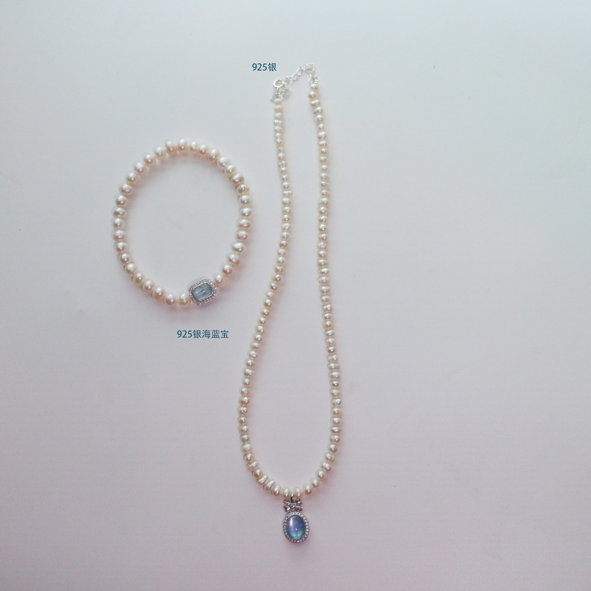 海藍宝真珠のネックレス925銀のアクセサリーは軽くて豪華です。