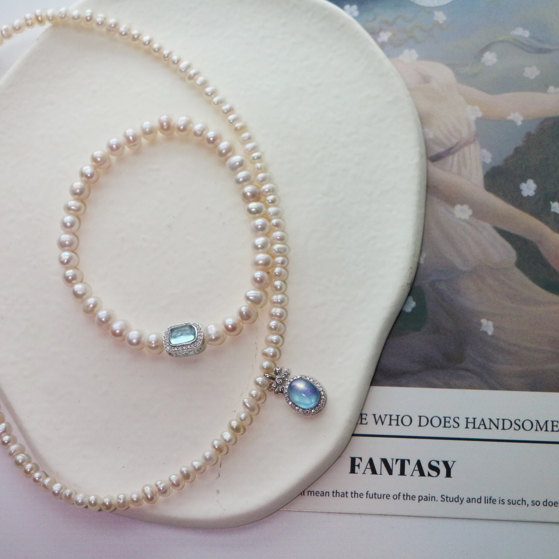 敦煌系天然石青リン灰ネックレスイヤリングヘアピンブレスレット指輪コレクション淡水バロック真珠