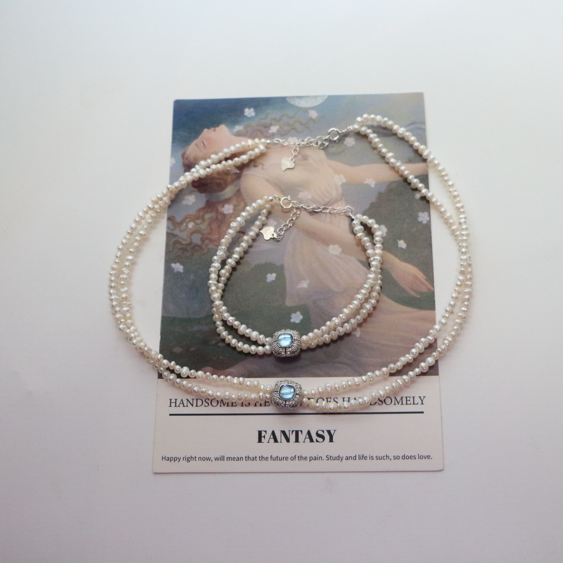 天然石個性創意デザインビーズネックレススモッグブルー淡水バロック真珠ブレスレットセットショートネックレス