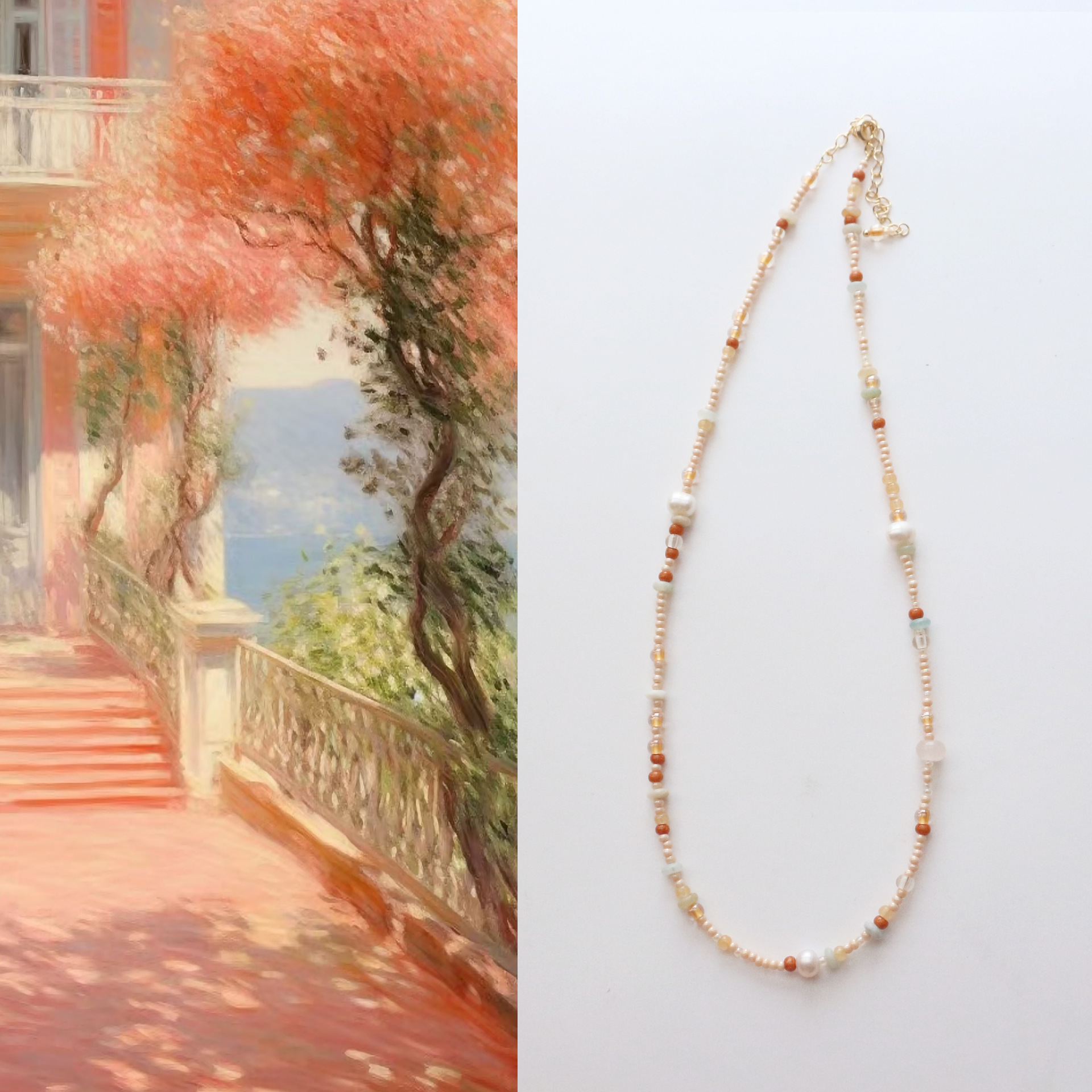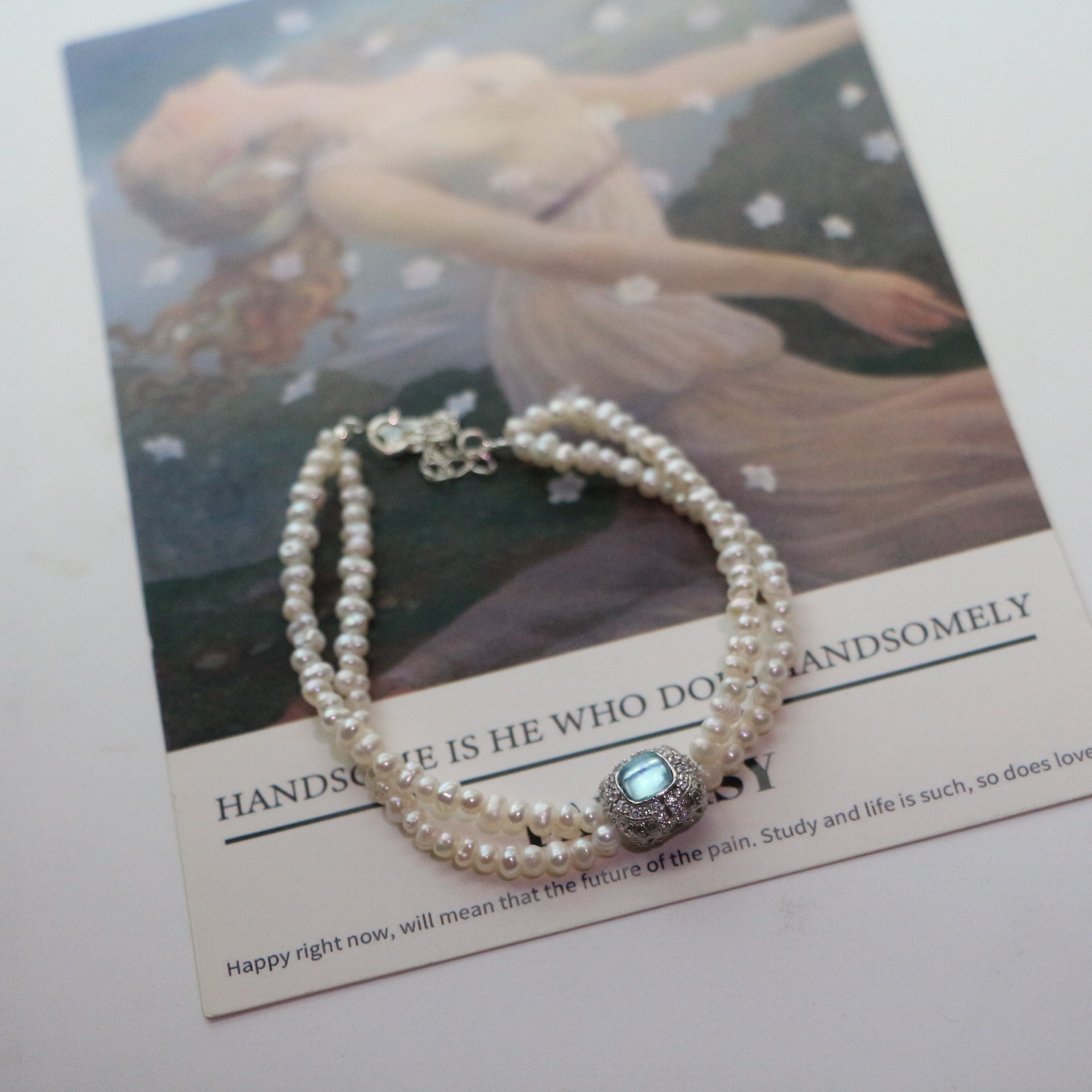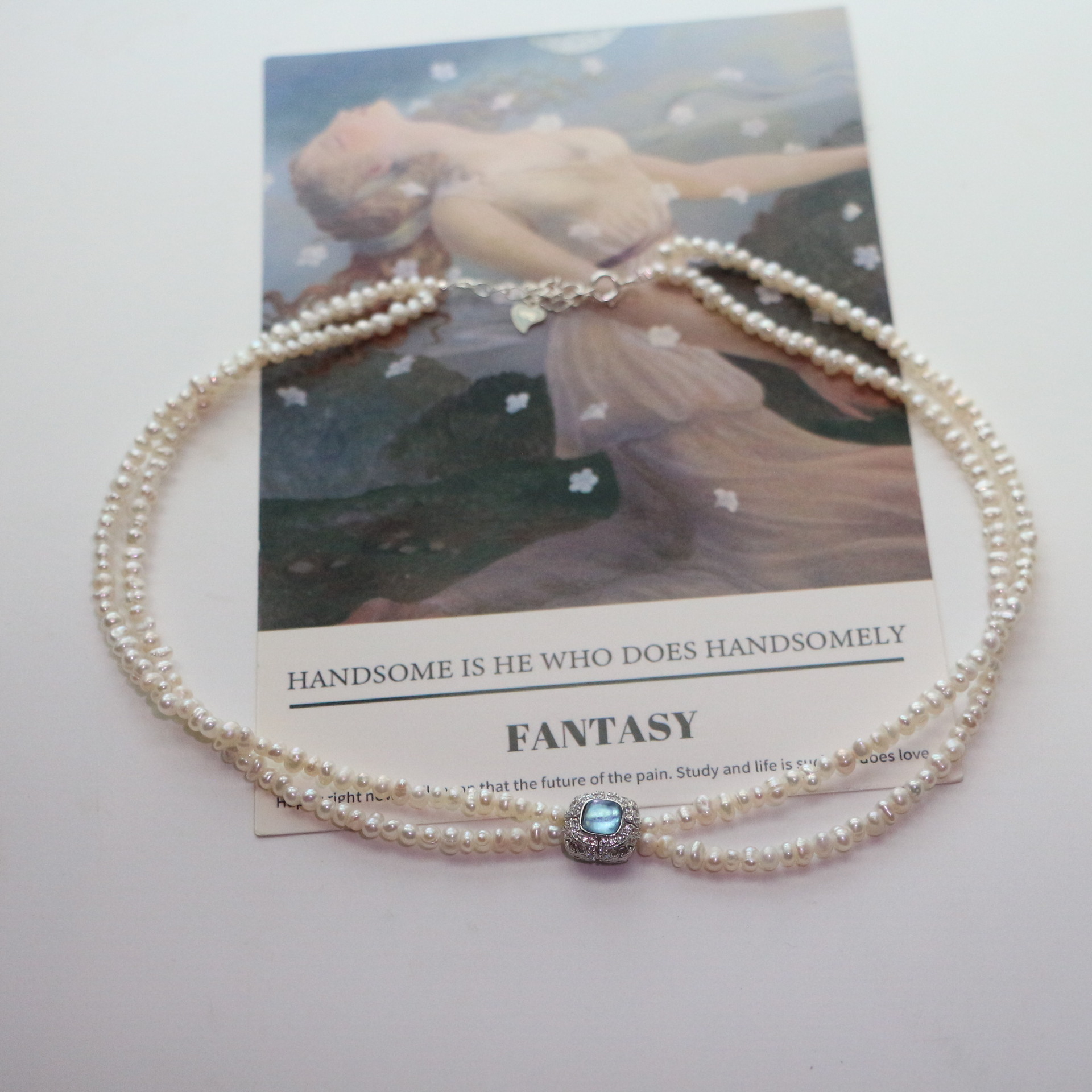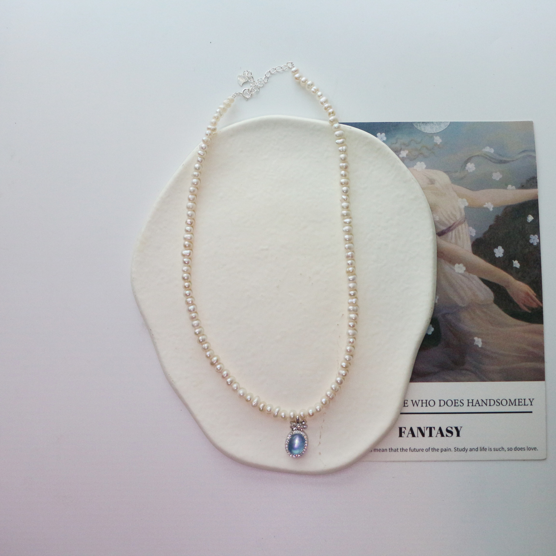 優しい復古風淡水バロック真珠天河石ビーズネックレス鎖鎖鎖鎖かわいい女の子