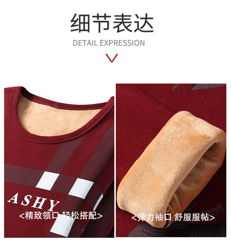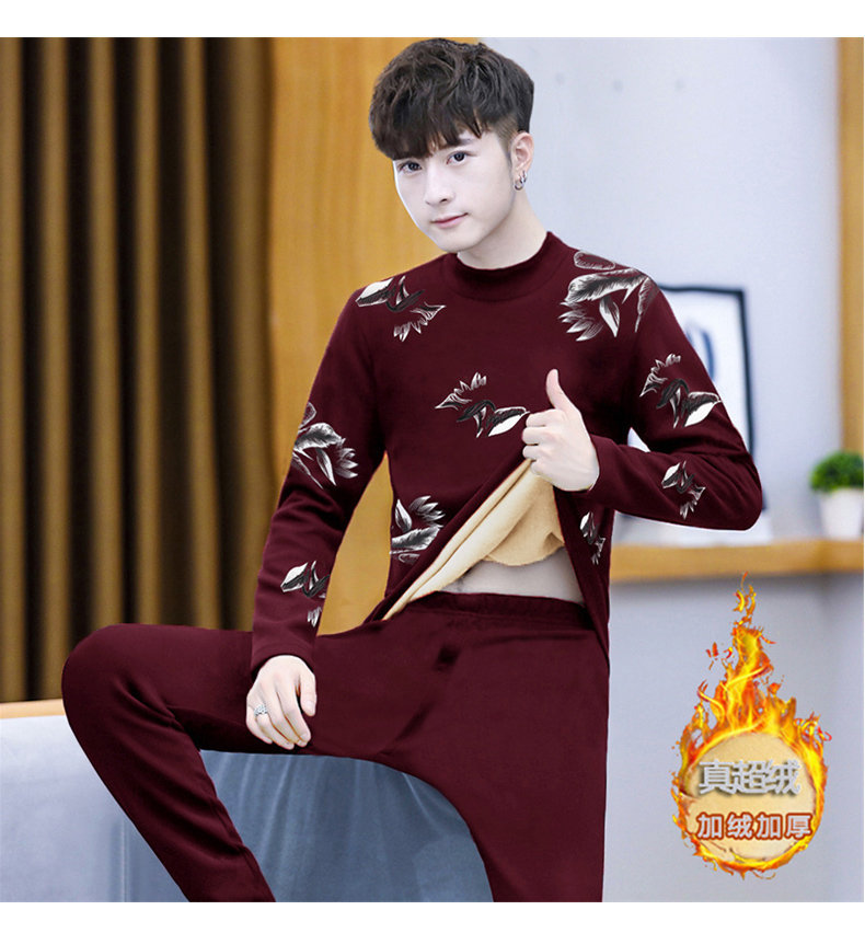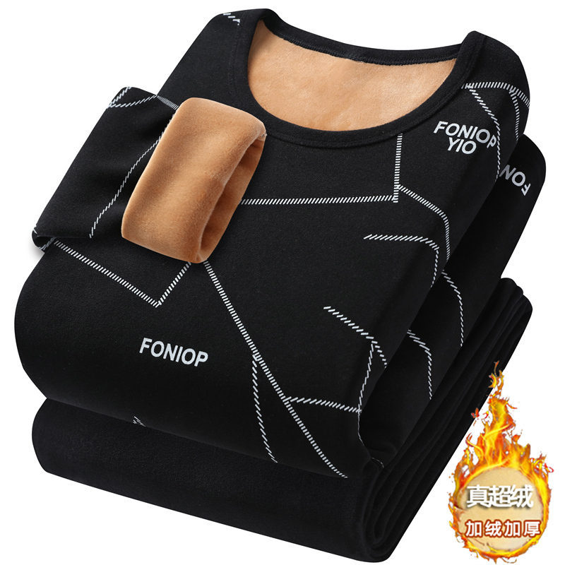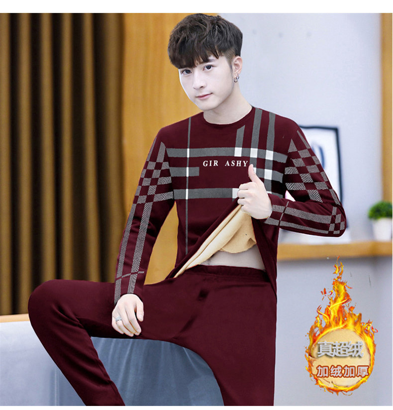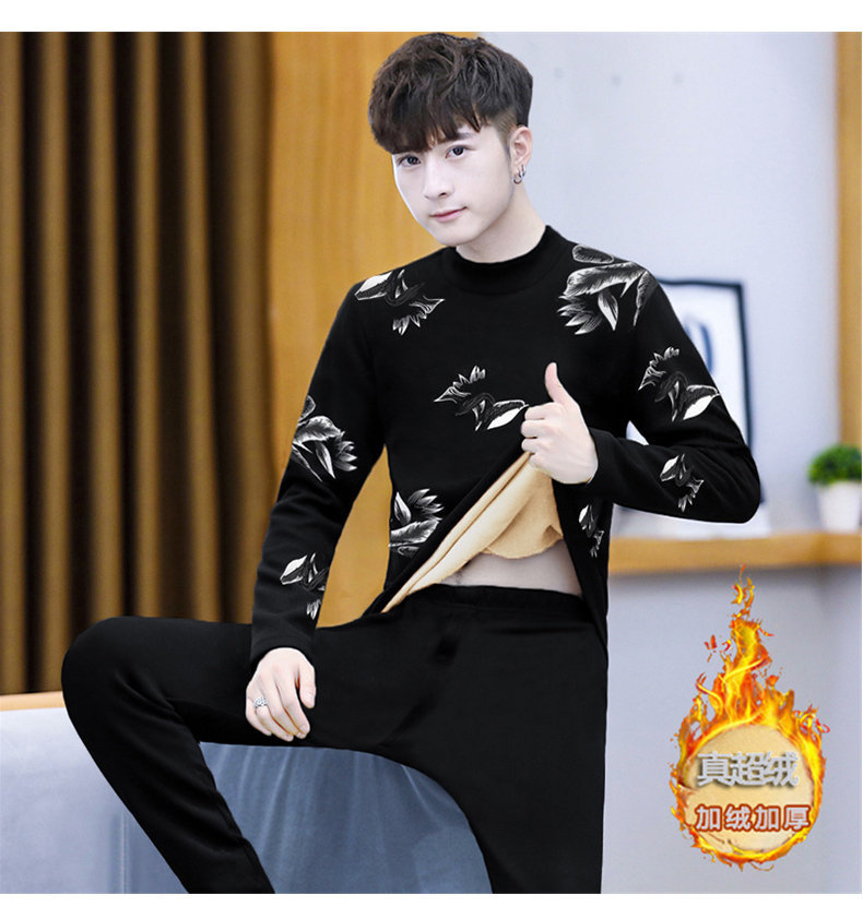 保温下着セット男性冬のベルベットは防寒青少年ファッション学生の2つのセットを厚くして丸襟を着る
