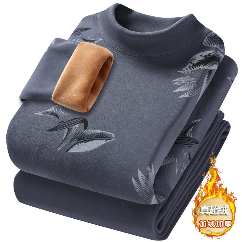 七匹狼男性中襟下着秋冬防寒綿セーター保温ズボンとベルベット保温下着セット男
