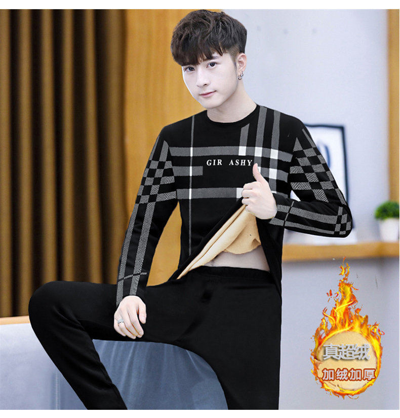 加绒加厚男士保暖内衣套装打底冬天学生青少年秋衣秋裤男款冬季男