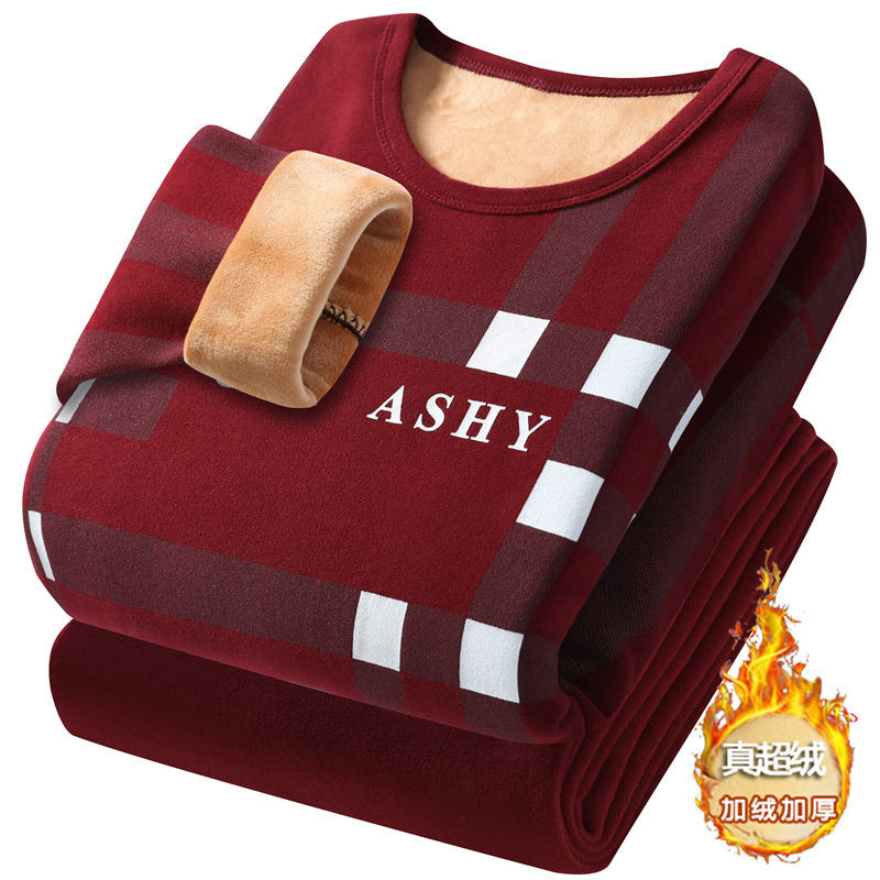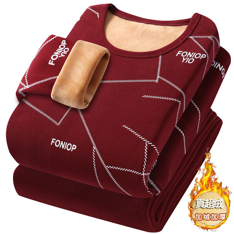 高級純綿保温下着男性セットの厚いベルベット秋冬男性青年の下着セット