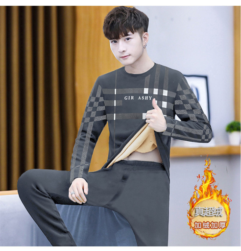 冬季男士加绒保暖内衣套装青少年学生男孩德绒加厚秋衣秋裤打底衫