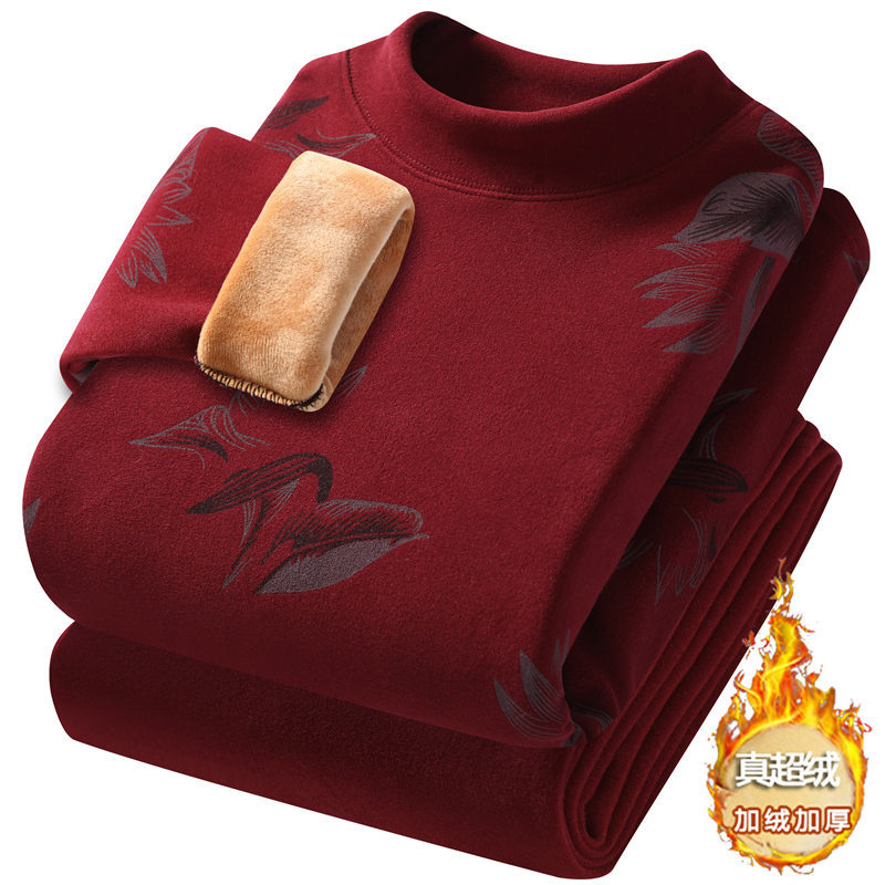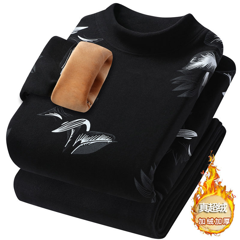 【キャメルの巨大な厚さ】秋冬の男性保温下着セットの半高襟とベルベットの厚い防寒秋衣秋ズボン