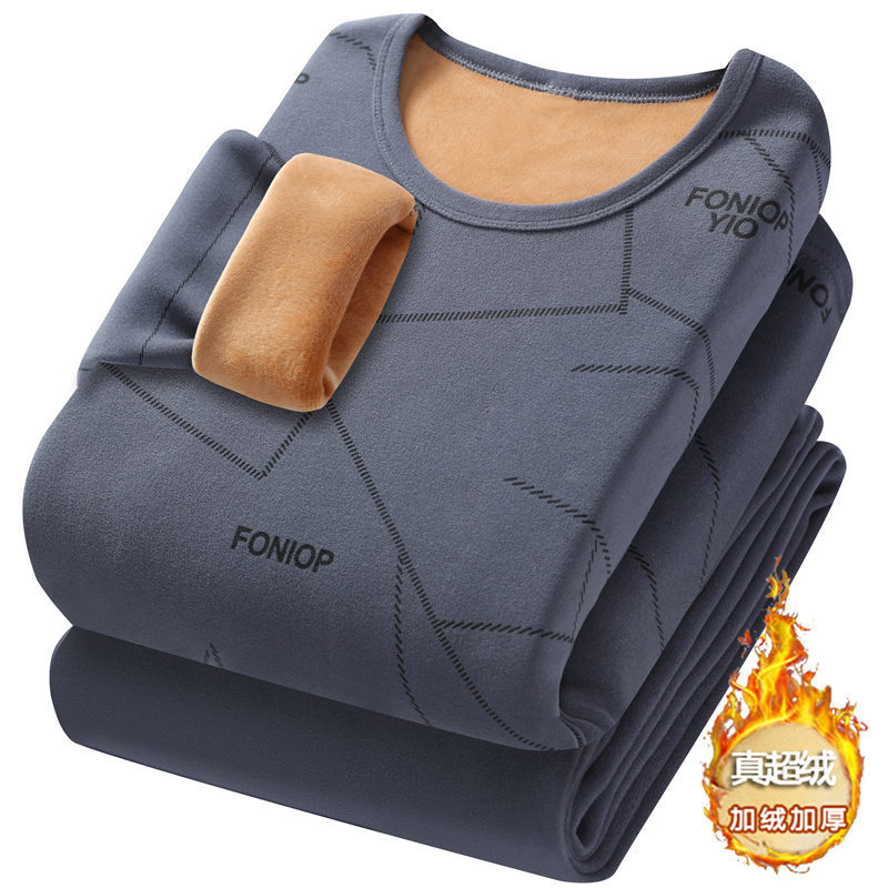 冬の保温下着セット男性のデットベルベットとベルベットは青少年学生の秋衣秋ズボンのシャツを厚くして防寒する