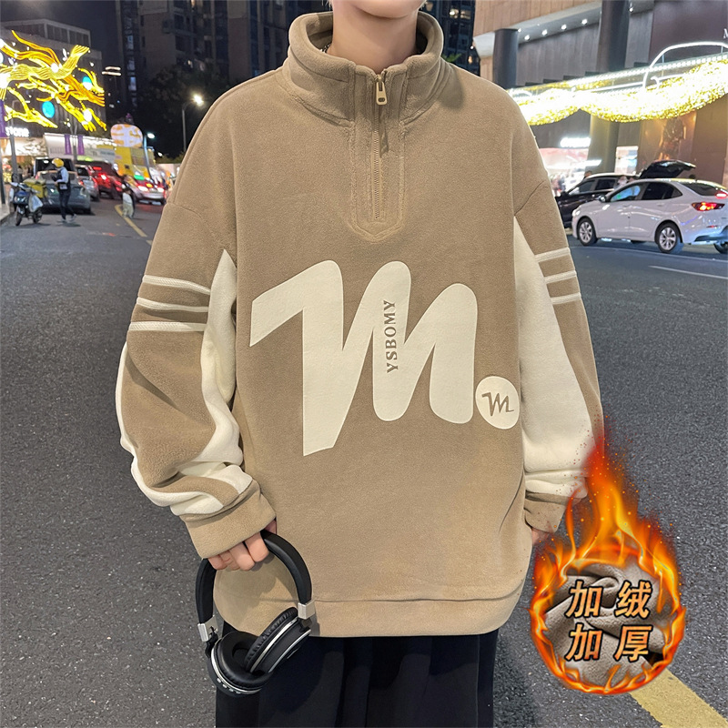 秋冬の半高襟の衛衣12歳の男の子の中学校の学生の13は男性の15大きい子供の底のシャツの上着をプラスします。