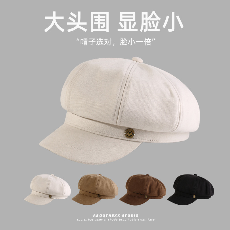 秋冬新款韩系贝雷帽子女八角画家帽复古大头围显脸小日系南瓜帽潮