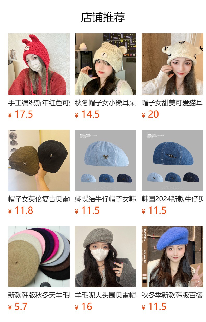 韩系大头围帽子女秋冬季保暖时尚百搭针织贝雷帽韩版显脸小画家帽