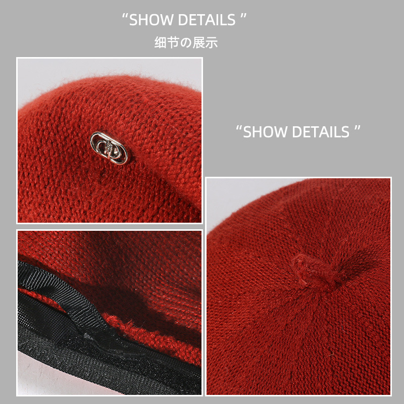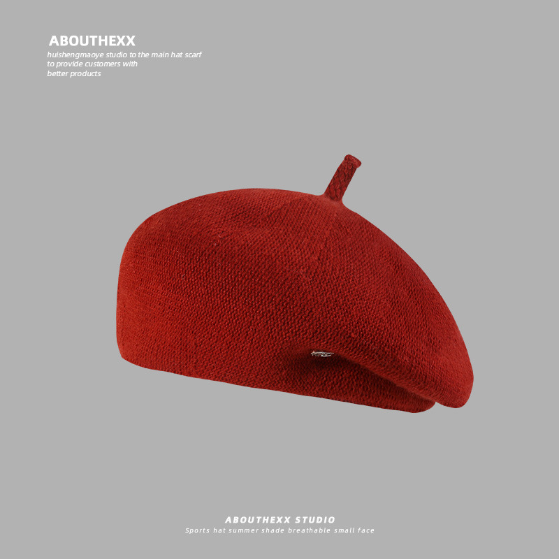 大きいサイズのニットのベレー帽の女性の春秋の通気性の百合は逆に前进の帽子をかぶせます。