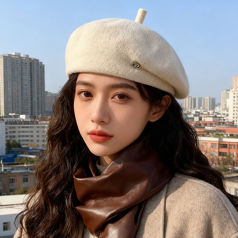 新しい韓国スタイルの秋冬ウールベレー帽、プリンセスハット、レディースベレー帽、卸売英国レトロペインターハット