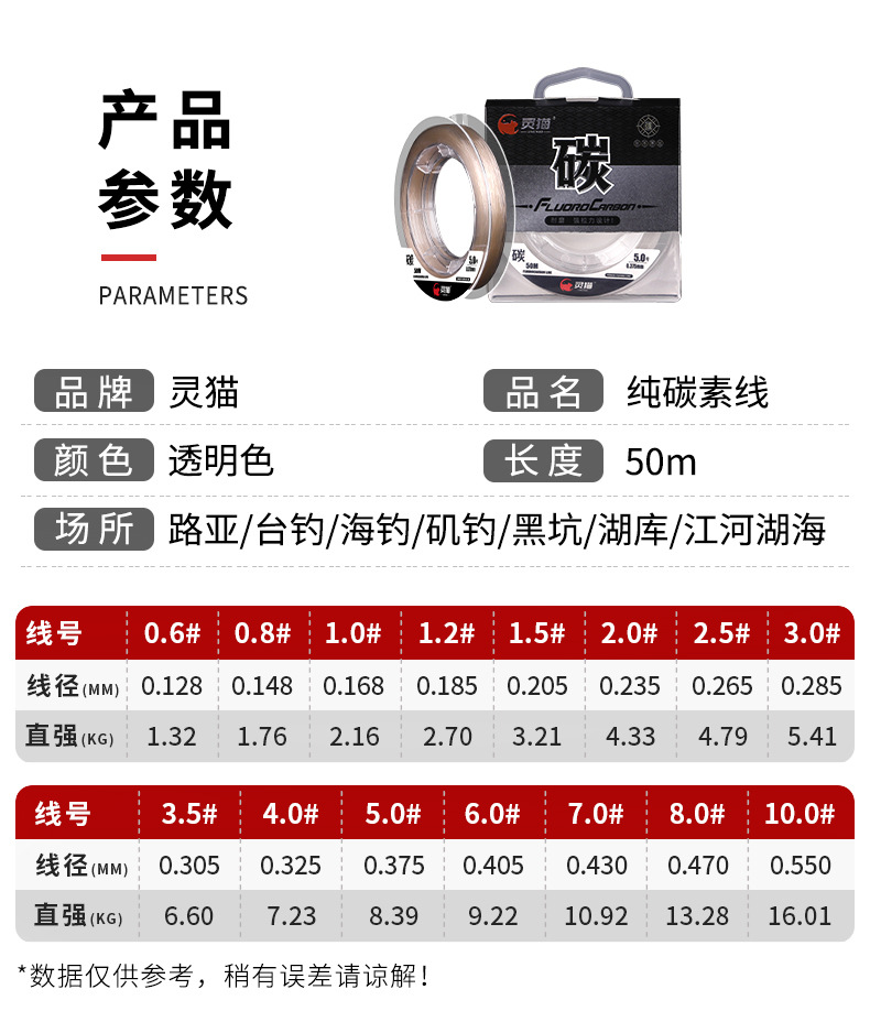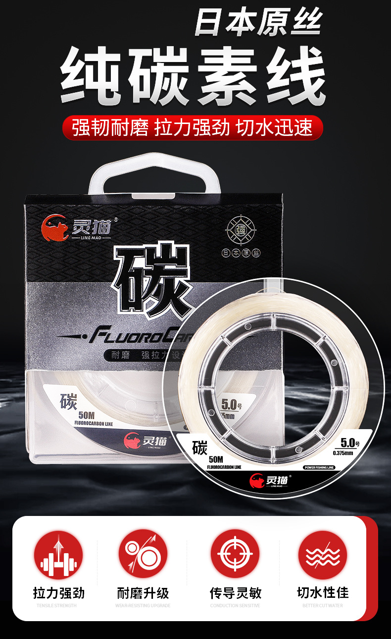 炭素線の全炭素路亜前のリード線のいかだ海釣り50メートルの釣り糸の線の強い力の超耐摩耗性の漁線の卸売り