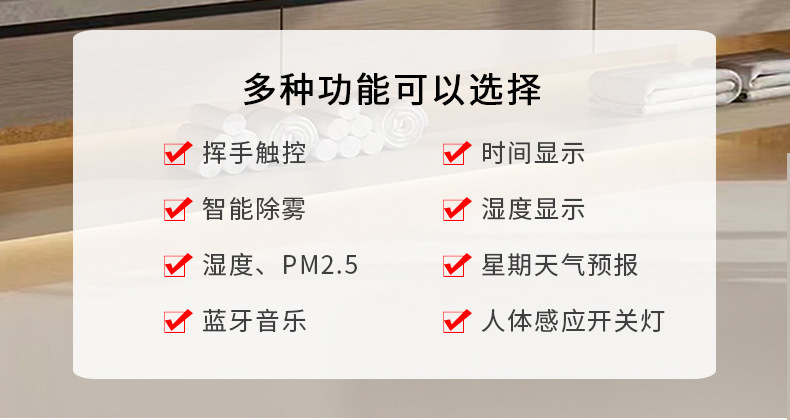 【ベーシックモデル】白色光+ノータッチ,【ベーシックモデル】ウォームライト+ノータッチ,【レギュラースタイル】白色光+タッチスイッチ,【レギュラースタイル】ウォームライト+タッチスイッチ,【モデル】白色光+曇り止め+タッチスイッチ,【モデル】ウォームライト+曇り止め+タッチスイッチ,【Zunyueモデル】3色ライト+無段階調光+タッチスイッチ,【プレミアムモデル】3色ライト+無段階調光+曇り止め+タッチスイッチ,【専用モデル】3色ライト+無段階調光+曇り止め+時間・温度+タッチ,【フラッグシップモデル】3色ライト+無段階調光+曇り止め+6ボタンBluetooth+タッチ,【人体誘導】3色ライト+無段階調光+曇り止め+タッチスイッチ,【人体感知】3色ライト+無段階調光+曇り止め+時間・温度+タッチ,【人体感知】3色ライト+無段階調光・曇り止め+6ボタンBluetooth+タッチ,【インテリジェント音声】時間温度+3色ライト+無段階調光+曇り止め,【気象ステーション】温度湿度PM2.5+時間温度+3色ライト+曇り止め