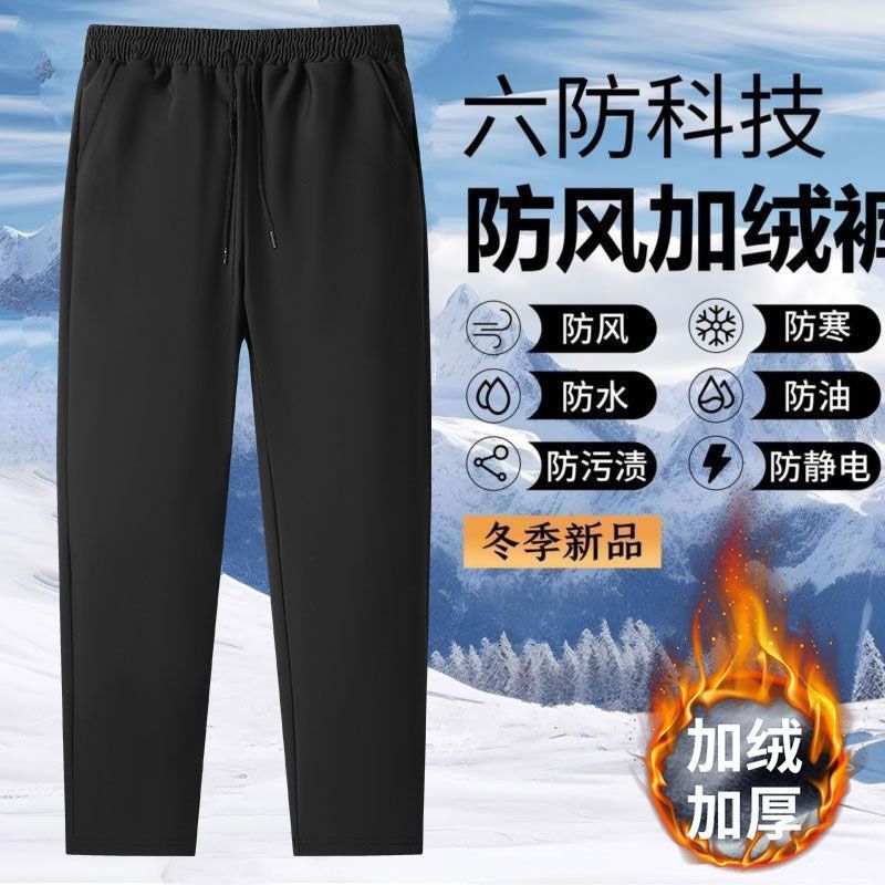 六防新款男防风保暖裤加绒加厚休闲裤户外运动束脚裤百搭宽松卫裤
