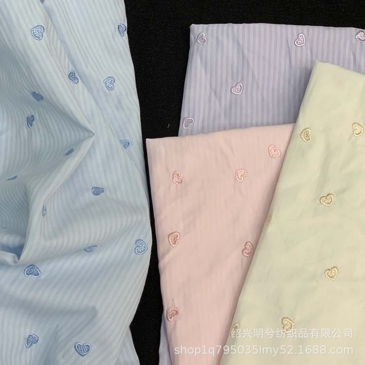 春夏新品韩系条纹爱心刺绣 女装发饰 连衣裙吊带面料