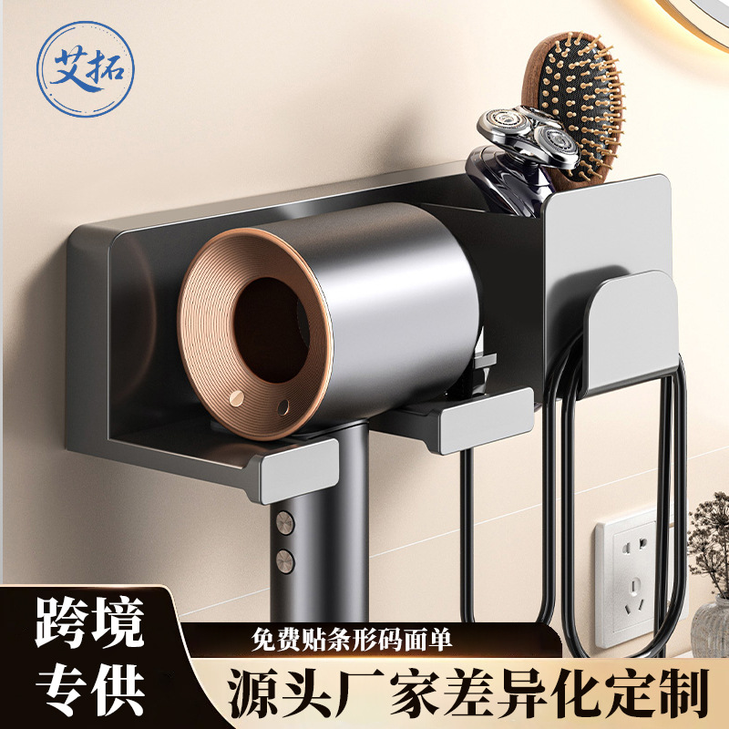 跨境吹风机置物架免打孔卫生间收纳电吹风挂架懒人壁挂吹风筒支架