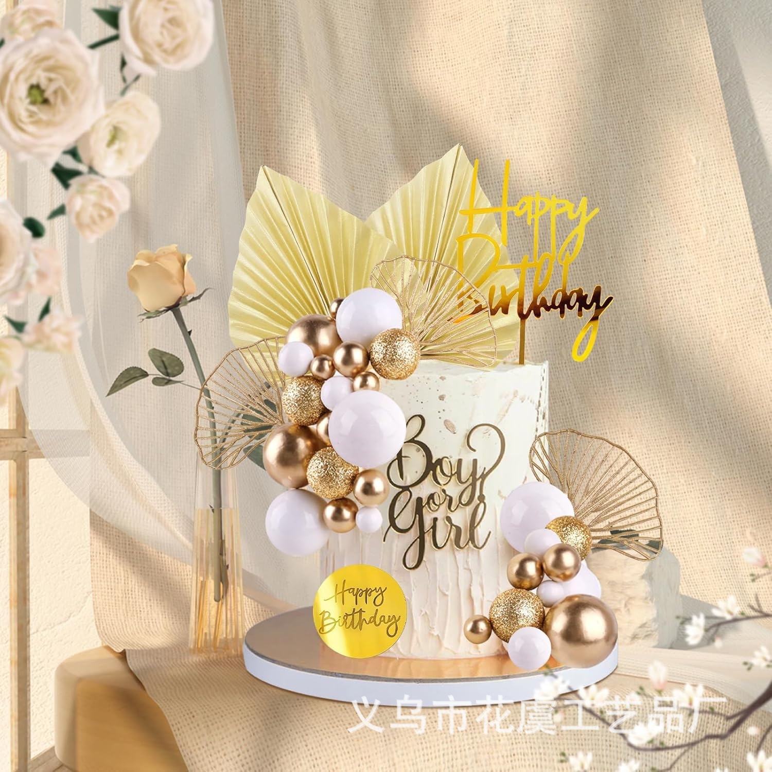 30球波西米亚主题闪粉金球粉球蛋糕插件装饰套装派对摆件用品
