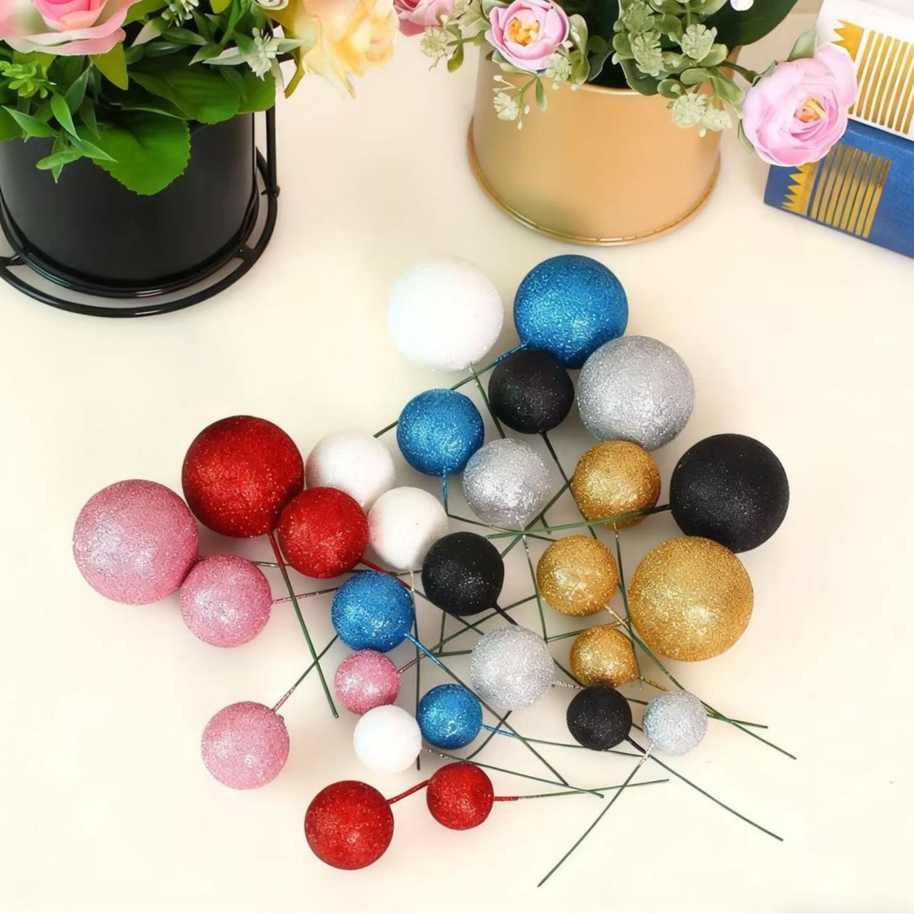 32 グリッターボール光沢のあるボールセットインサート誕生日ケーキデコレーションボールベーキングインサートインコールドスタイル