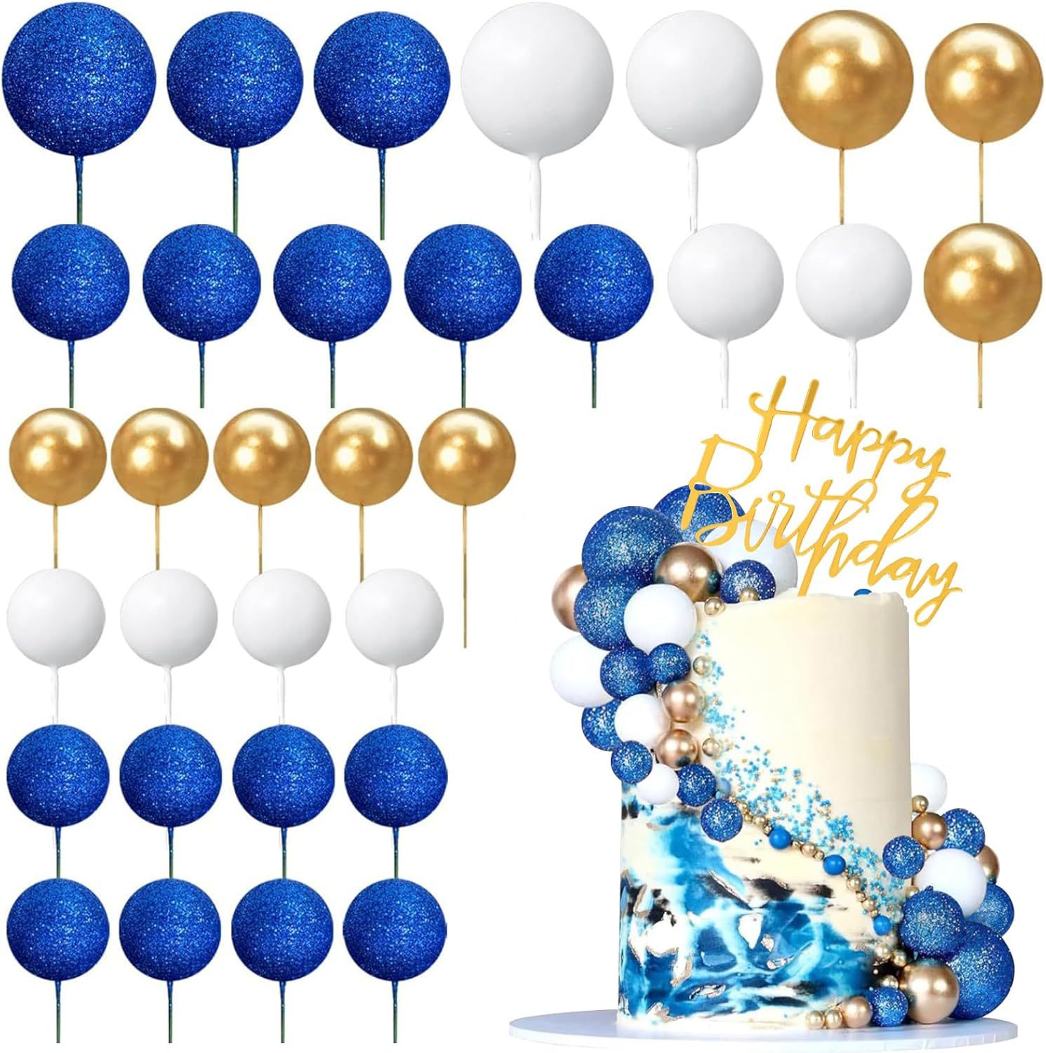 ベーキングバースデーケーキデコレーション ゴールド&シルバーボール ベーキングボールオーナメント デコレーション用品 誕生日パーティー用品 20個入り