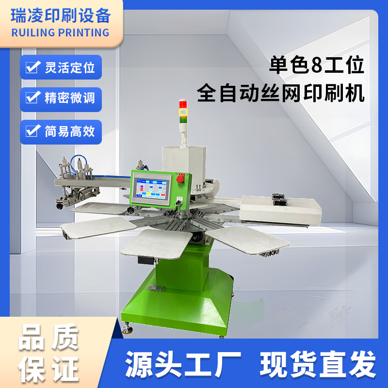 瑞凌单色八工位全自动丝网印刷机八爪鱼印花机