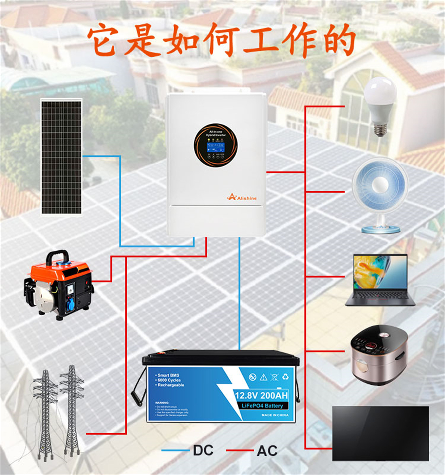 太陽光家庭用逆制御一体型1kw家庭用オフグリッド発電逆制御一体型太陽光発電システム220v