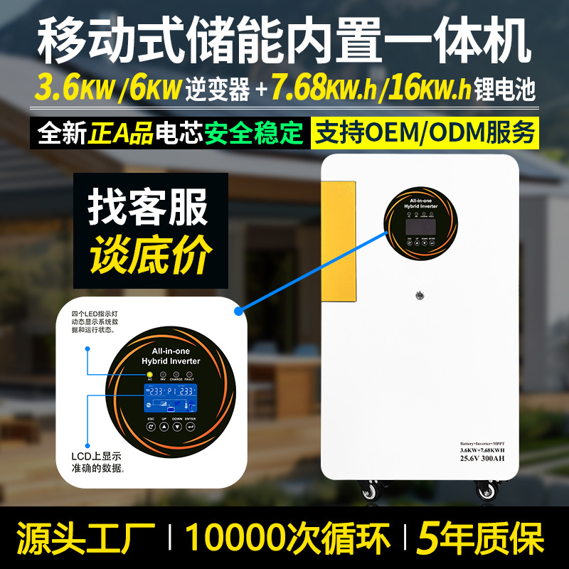 定制6kw+16kwh太阳能储能系统光伏蓄电池家用储能逆变一体机