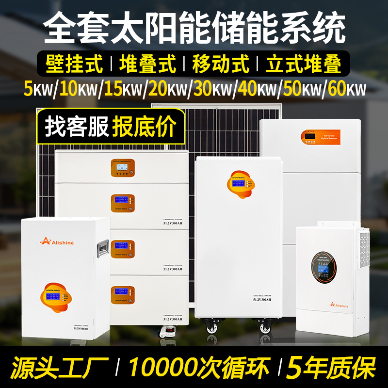 厂家专供5-60KW家庭储能电池离网太阳能发电系统家用220v光伏全套