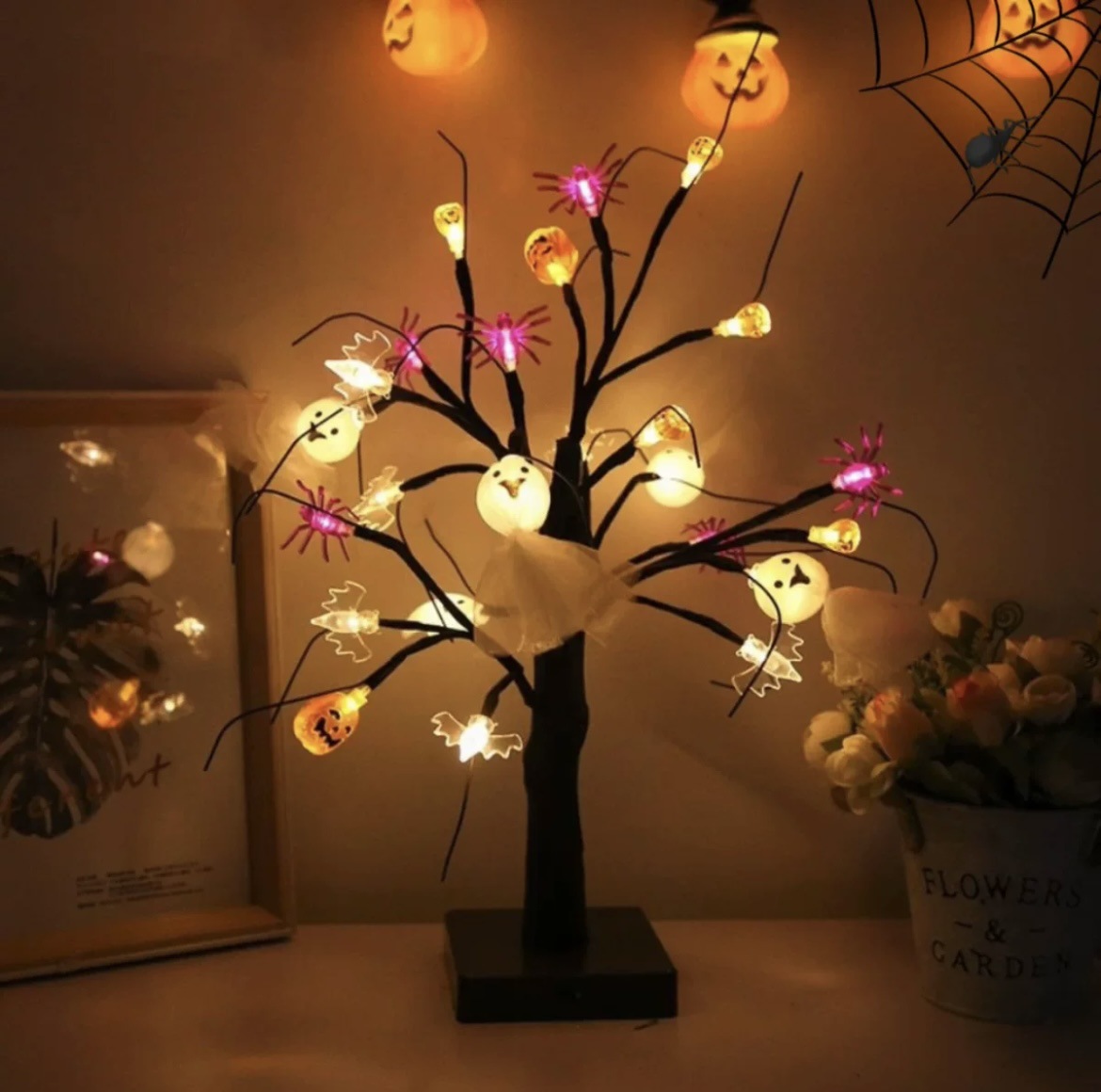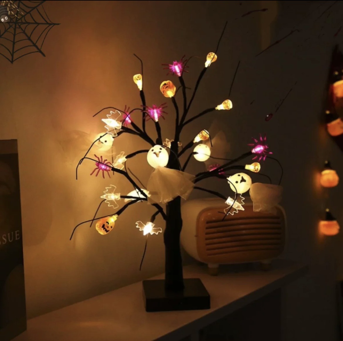 売れ筋LED白樺の木 イースター ハロウィン カボチャ クモ クリエイティブな置物 装飾的な雰囲気のある小さなツリーライト