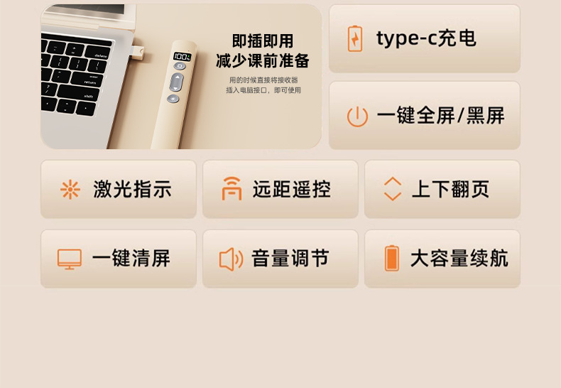 B1 xクロスボーダー2024新型工場新型ページめくりペンPPTリモコンマルチメディア充電可能デジタル表示ページめくりペン