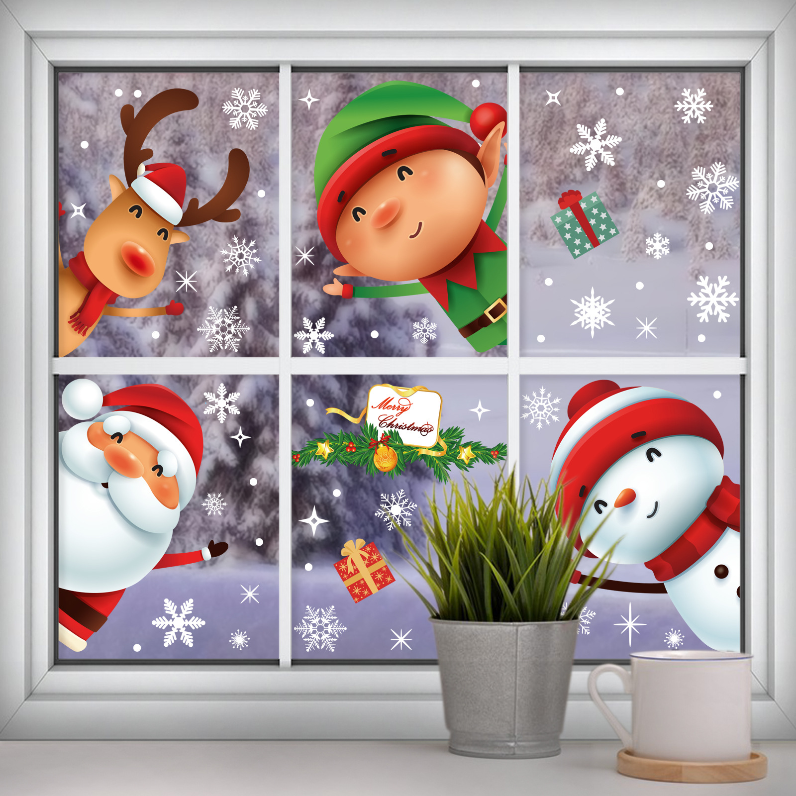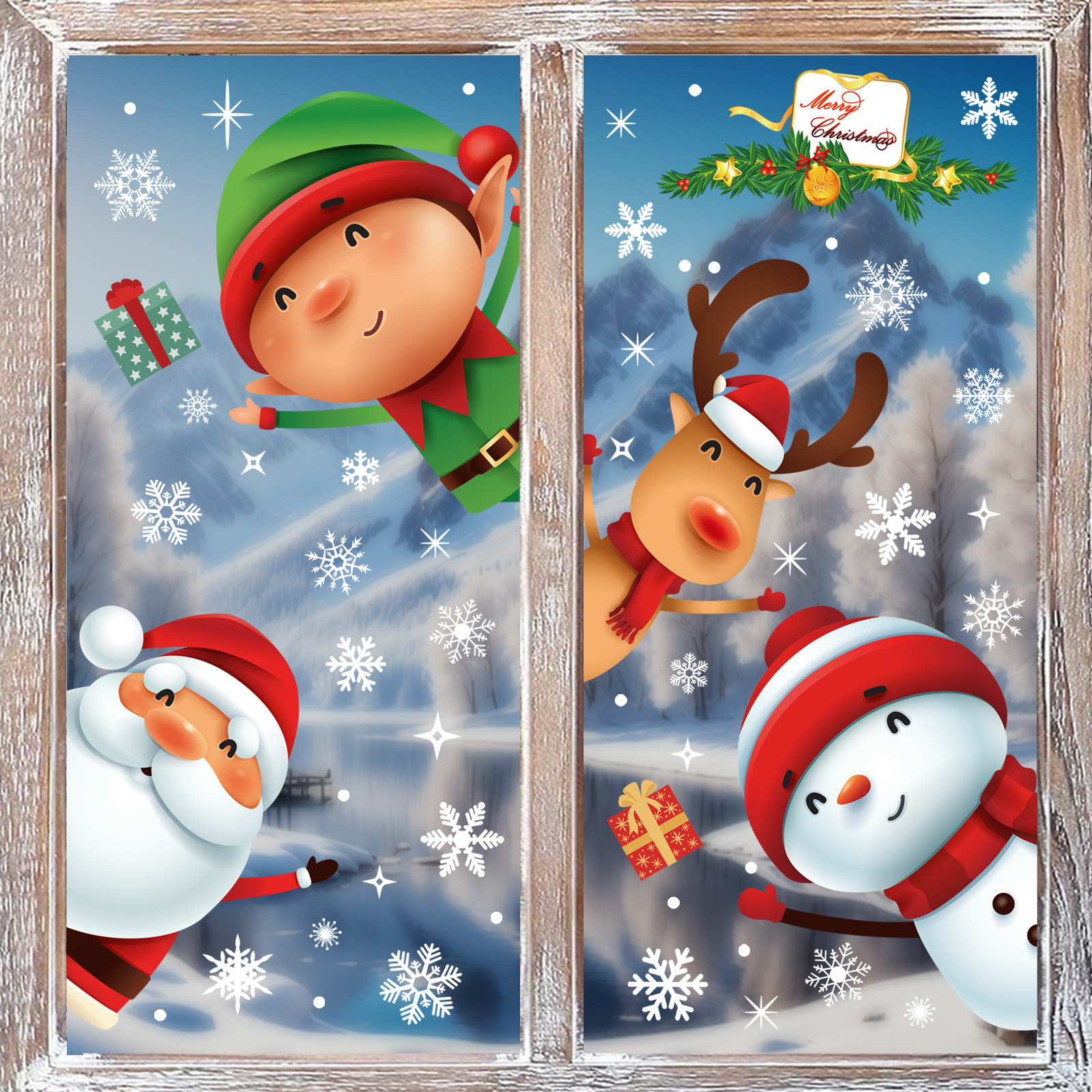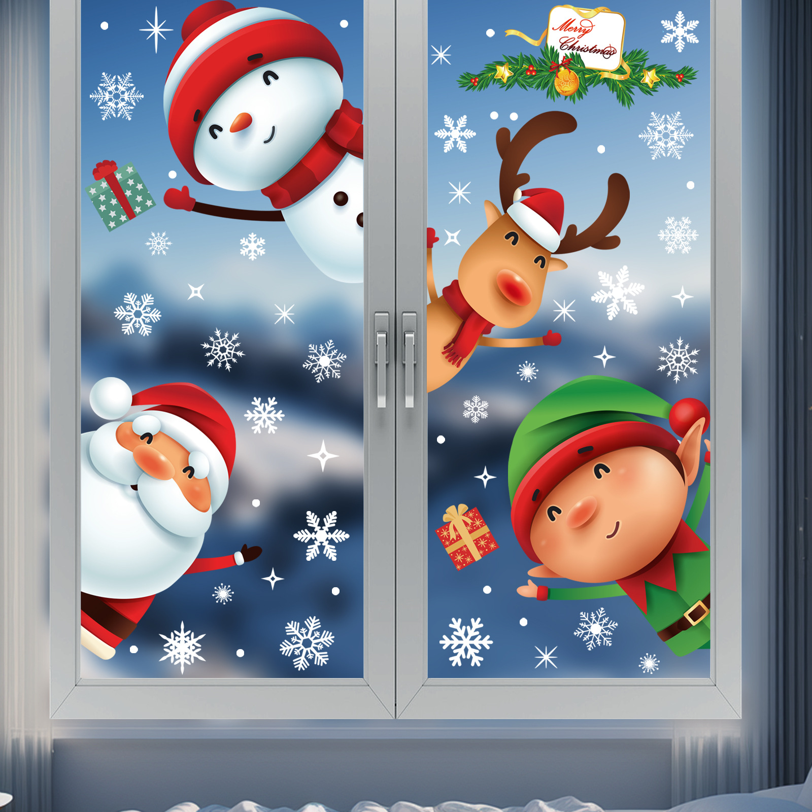 クリスマスシールサンタクロース雪だるまガラス貼りショーウインドー配置雪ヘラジカ窓貼り両面効果装飾