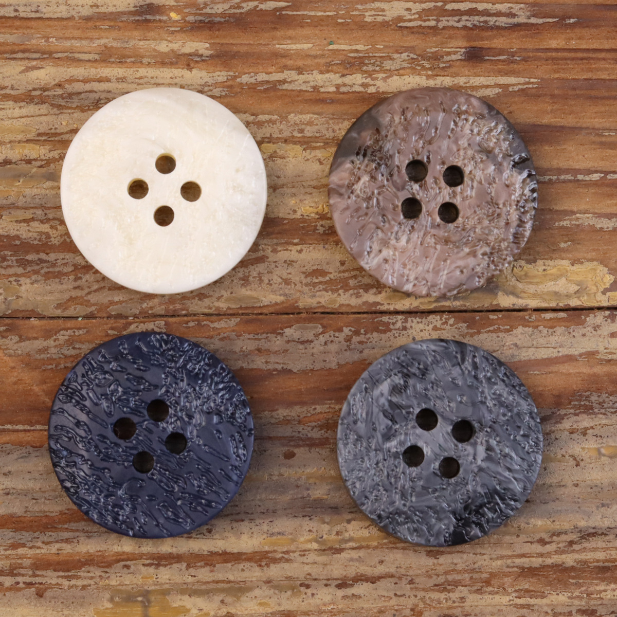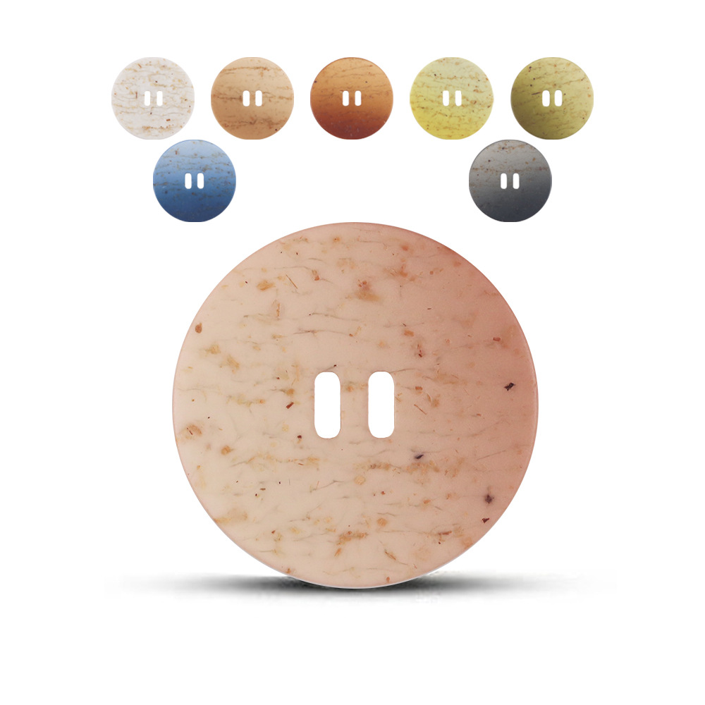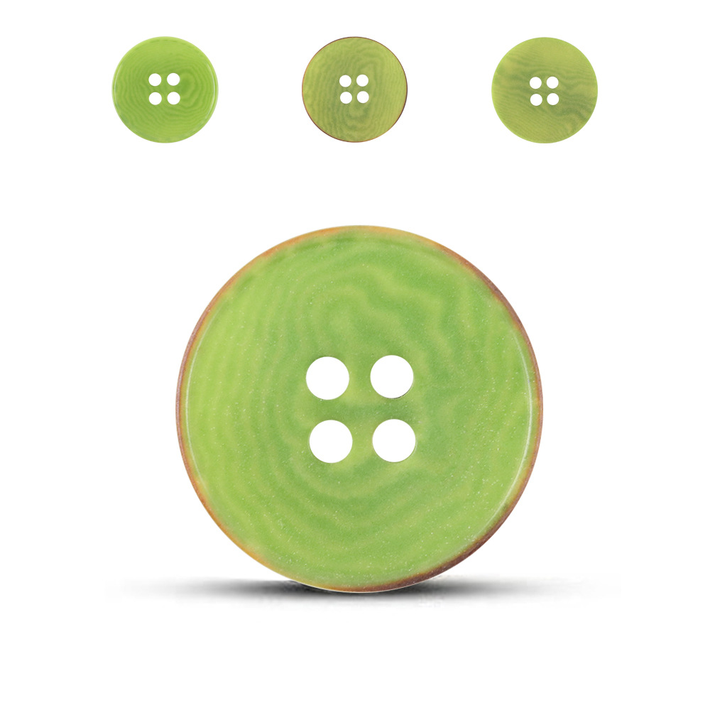 志とレトロなカジュアルなグラデーションカラーの2つの目の樹脂ボタンのデザイン感があります。