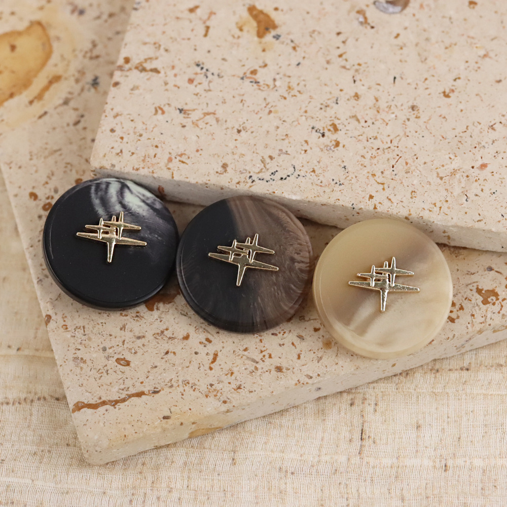 星星装饰树脂拼金属纽扣黑灰色双面呢大衣西服外套扣卡其色风衣扣