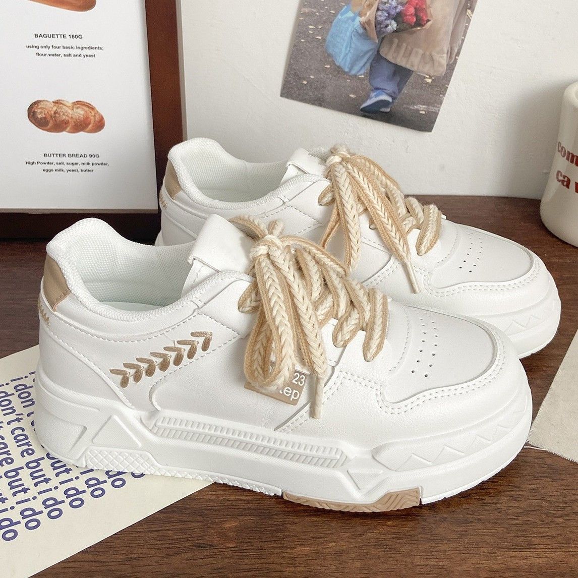 大码女鞋35-43 宽胖肥脚41休闲小白鞋小众运动鞋女厚底麦穗板鞋42