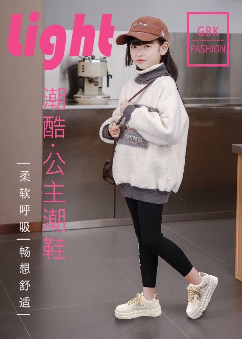 女の子の板靴2024秋の新しい子供の運動靴の白い靴の低い靴の柔らかい底の靴の中の大きい子供の女の子の靴