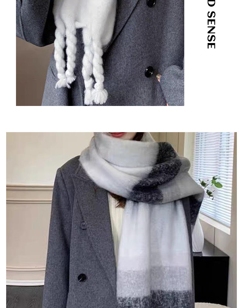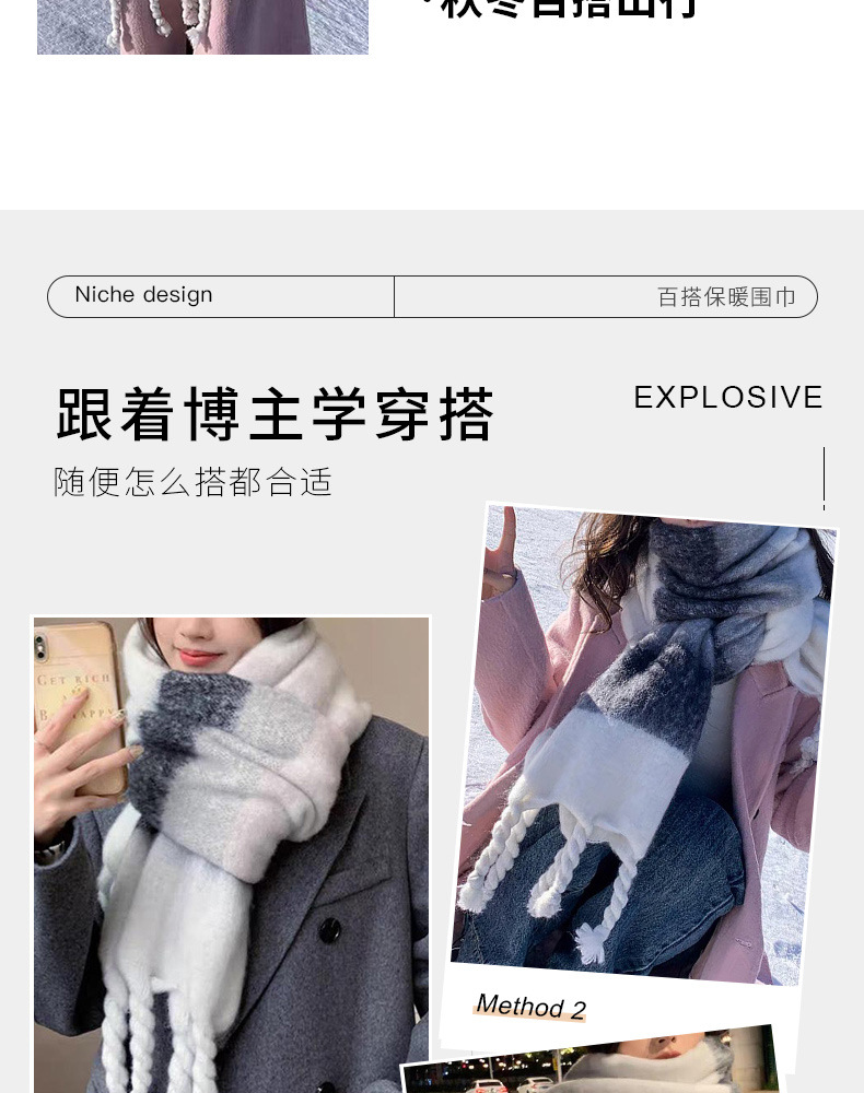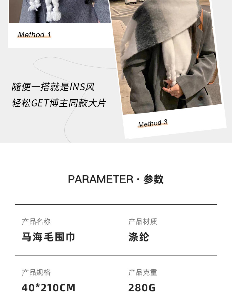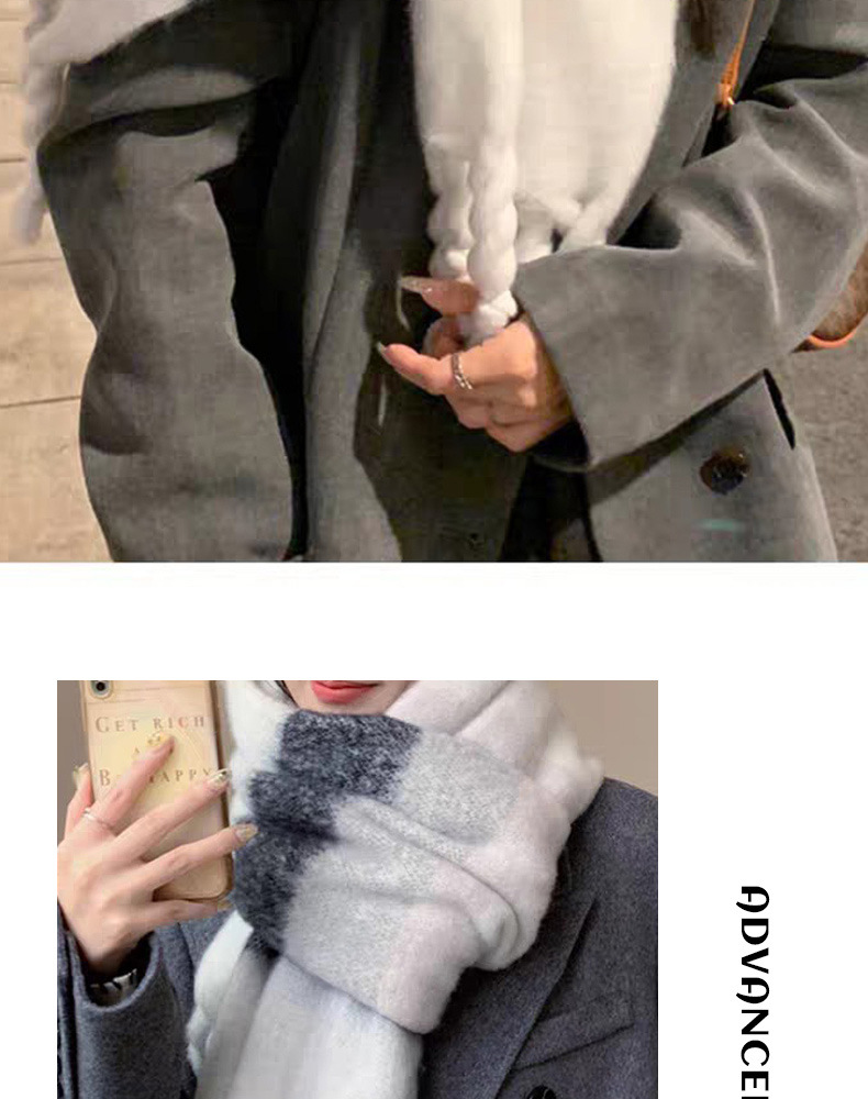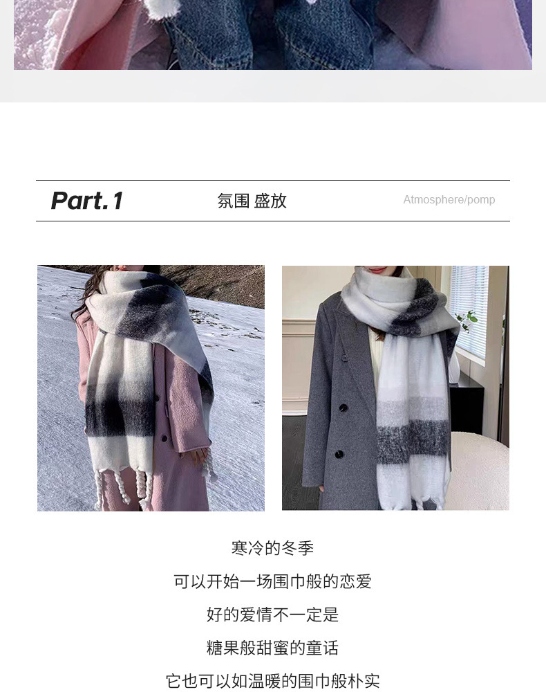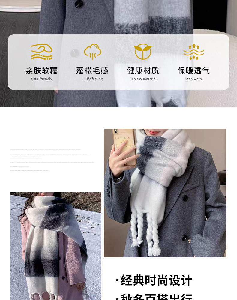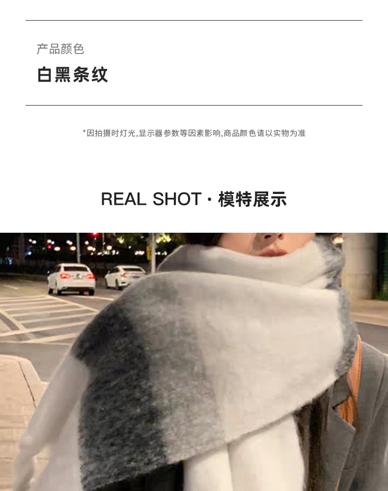 韩系百搭加厚格子围巾女保暖围脖 披肩高级感冬季学生黑白格围巾
