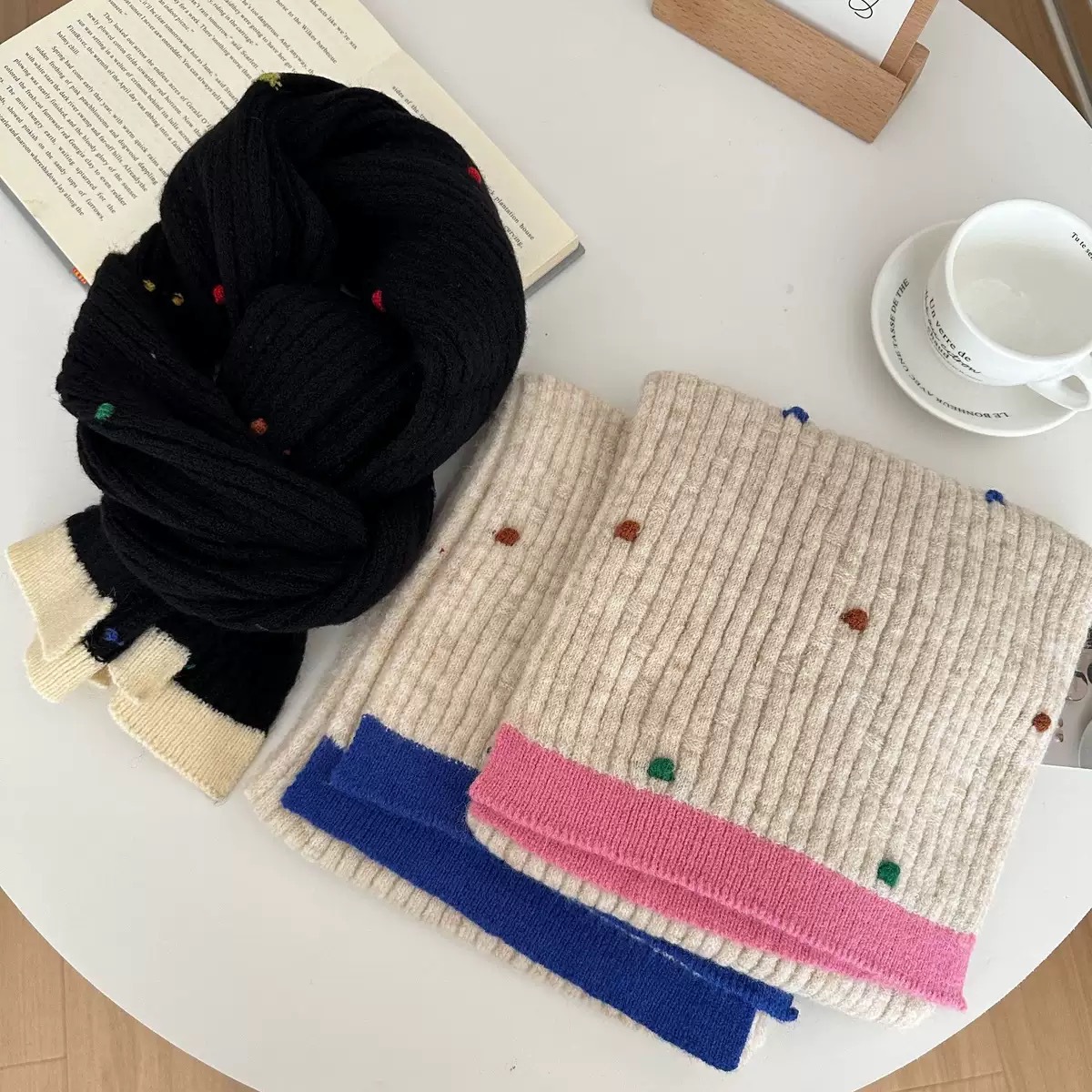个性彩色点点羊毛针织围巾小清新男女款秋冬保暖洋气拼色毛线围巾