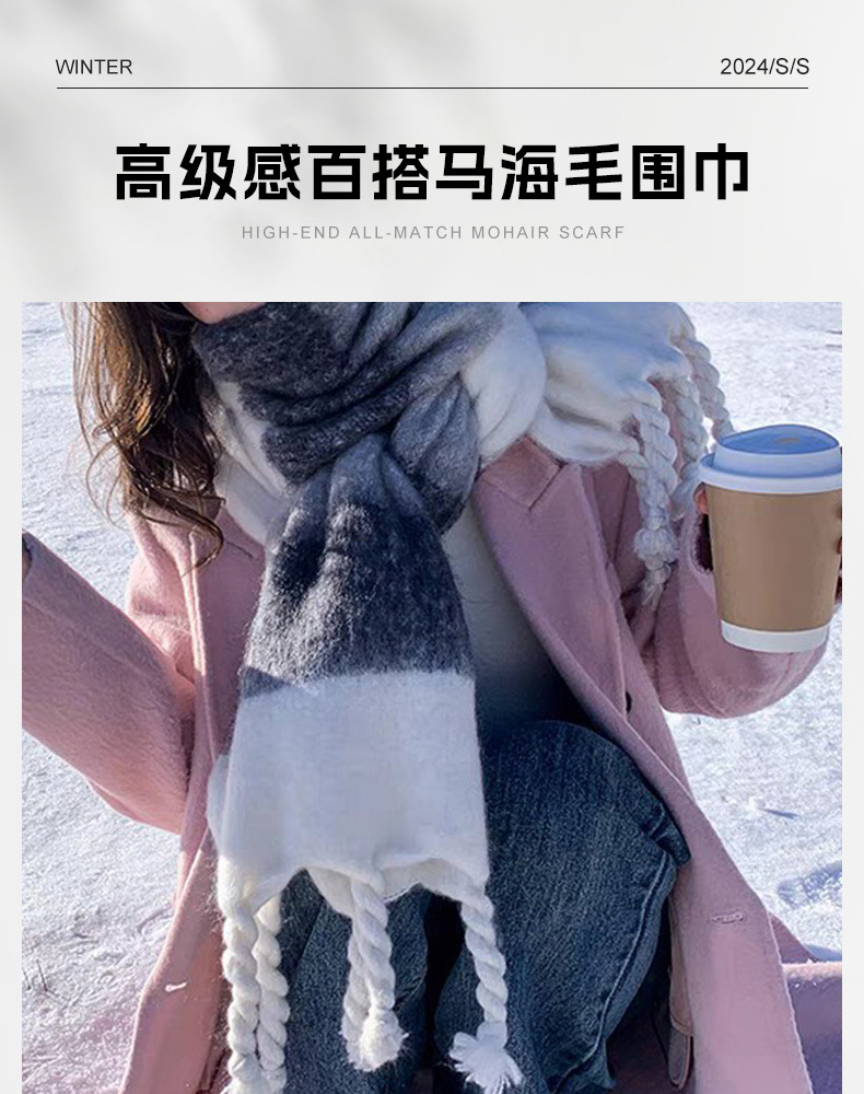 女性用冬用スカーフ、高級感があり多用途なモヘアスカーフ、新作厚手で暖かい学生用ふわふわネックスカーフ、男性用