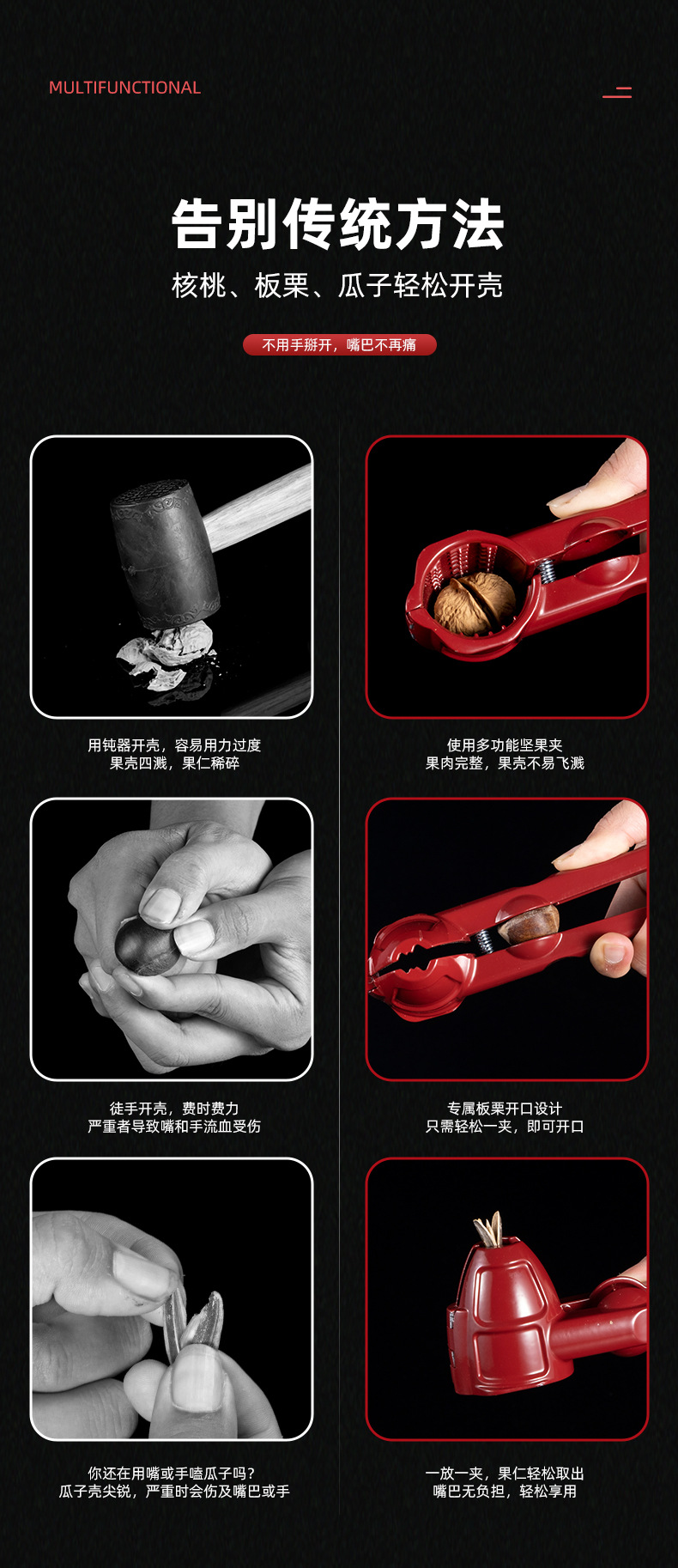 核桃坚果夹多功能剥核桃夹子工具碎壳开壳器榛子开口夹山核桃钳子