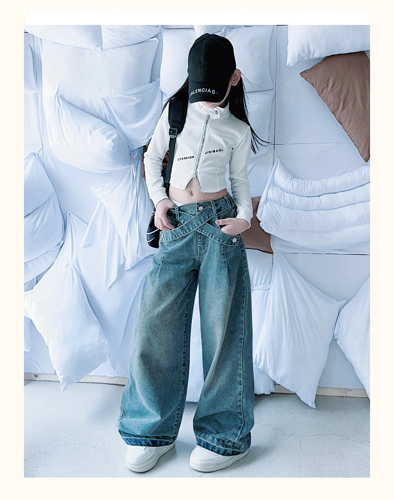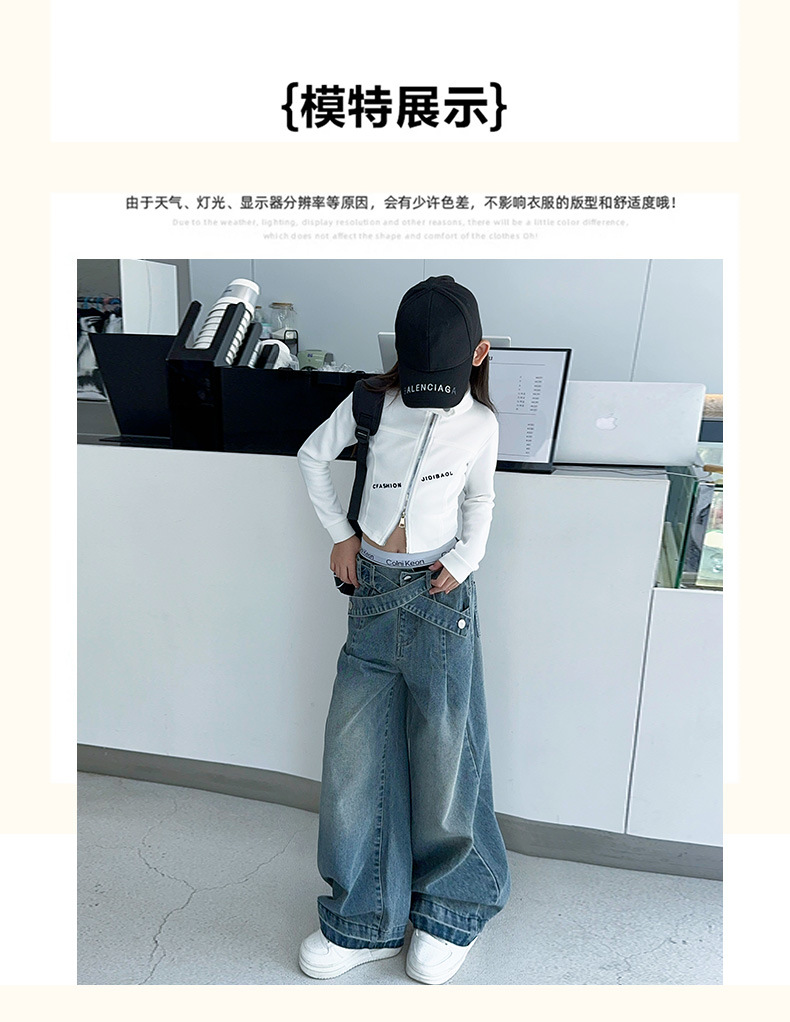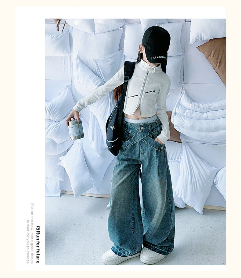 女の子の秋のスーツ2023の新しいファッションの女の子の中の大きい子供のカジュアルなジャズのカウボーイのスーツの春秋のタイプの潮の子供