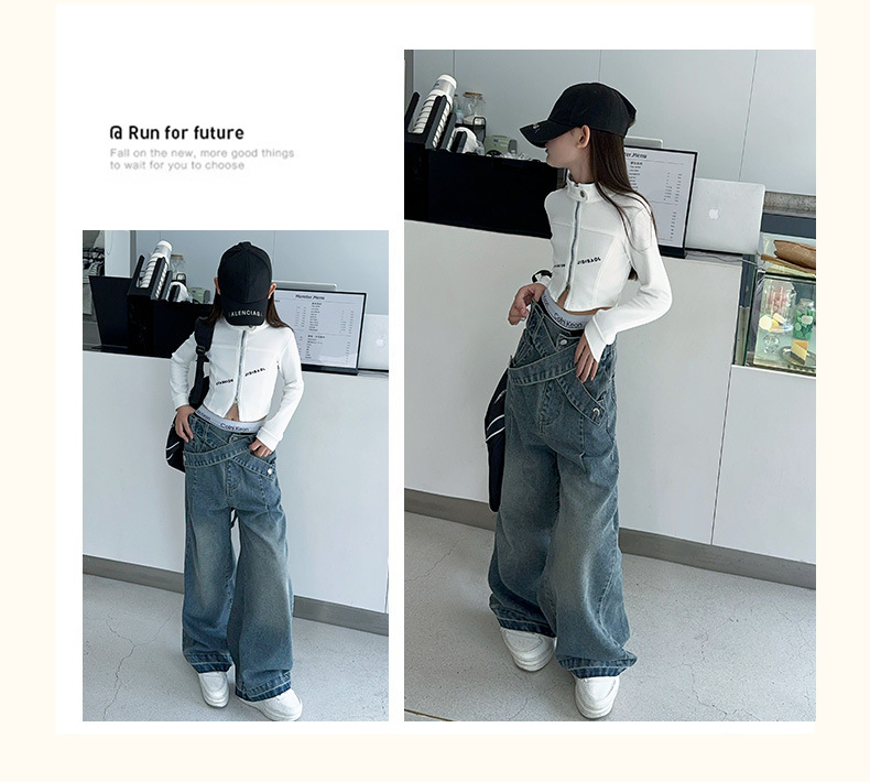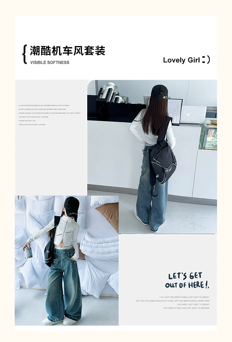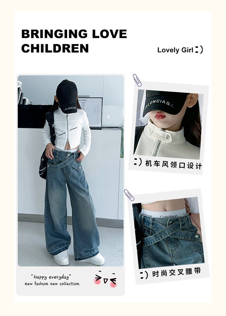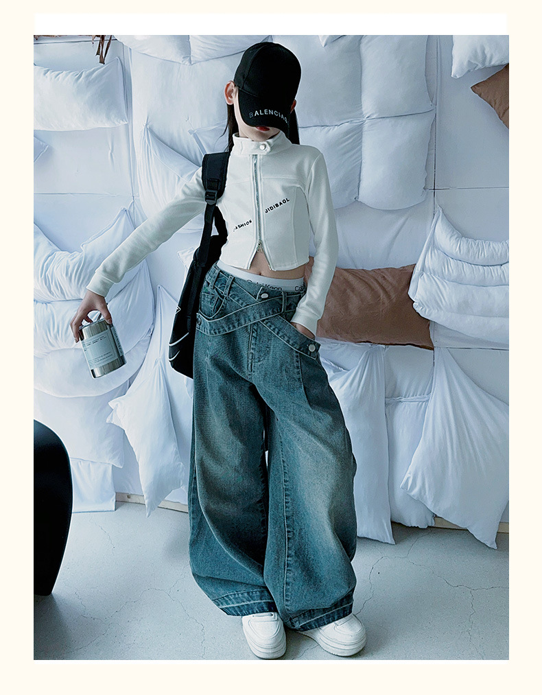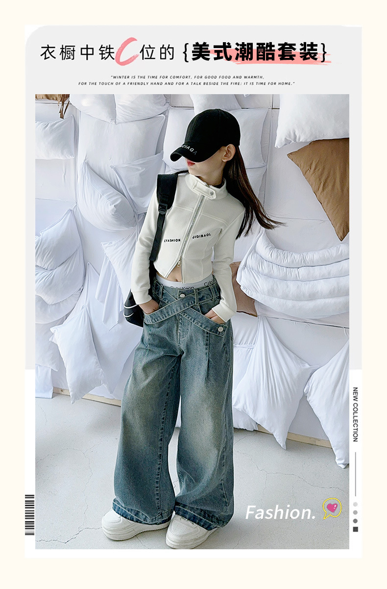 女の子の秋のスーツ2024のファッションの女の子の韓国系の子供の洋気のデザイン感のジーパンのガードルのスーツ