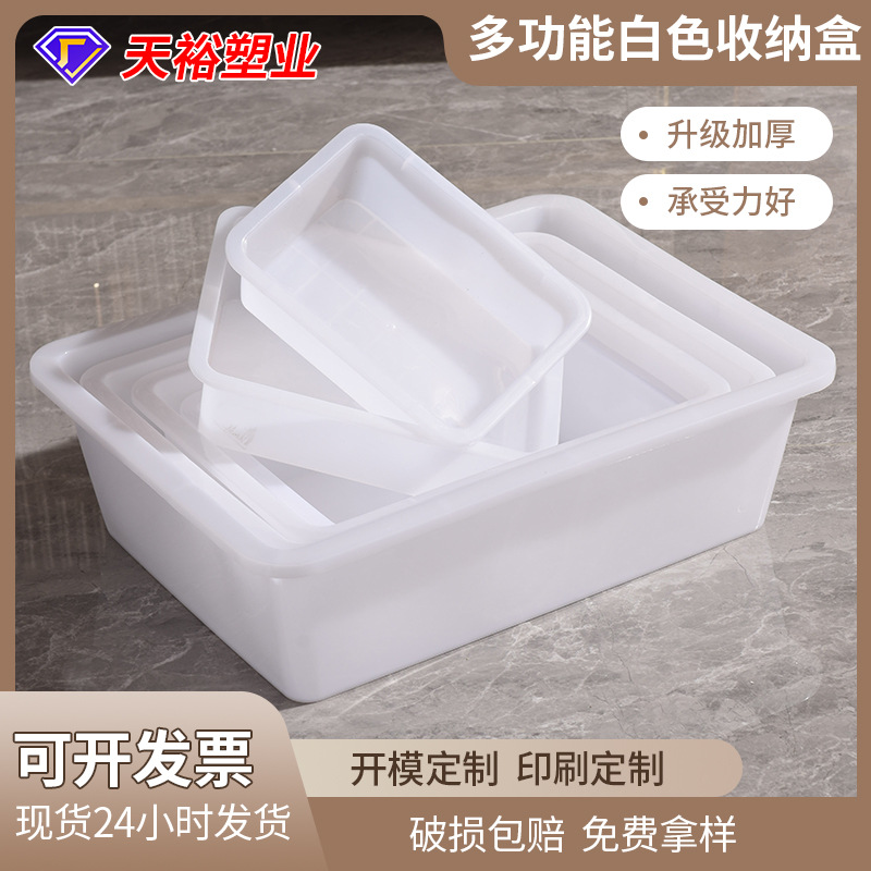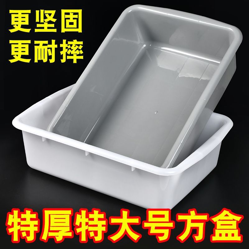 プラスチック製の四角い箱、白い四角い洗面器、長方形