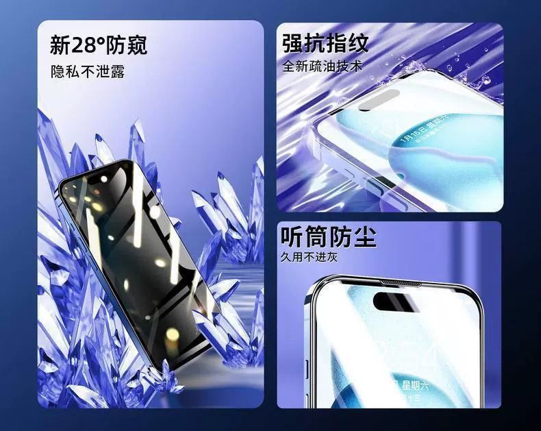 iPhone16Pro強化ガラスフィルム、Apple14promax防塵、15覗き見防止、13/12保護フィルム17に適用