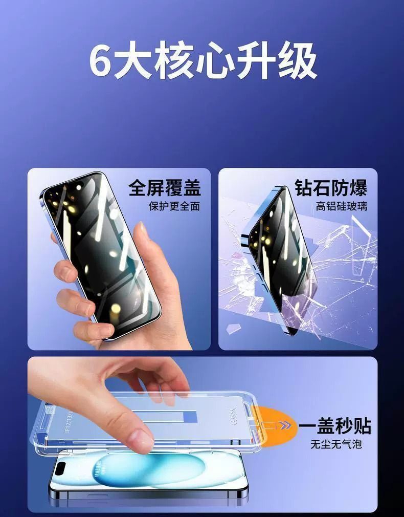 アップル15強化膜iPhone14promax/13/12クリーンルーム防覗き11防爆携帯電話秒貼りケースXs