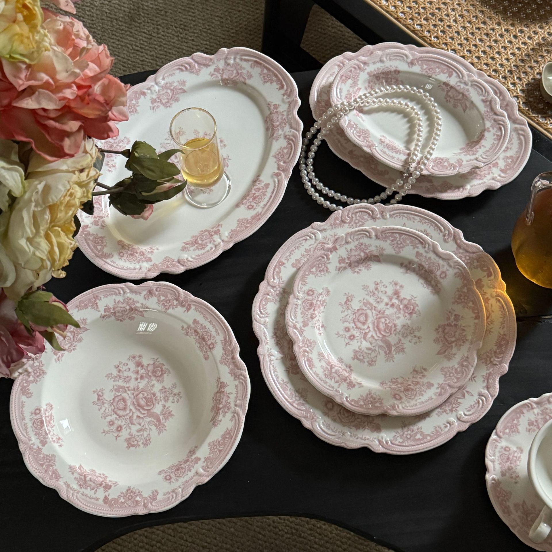 法式vintage复古粉色浮雕花卉陶瓷餐盘西餐高颜值甜品盘意面盘西