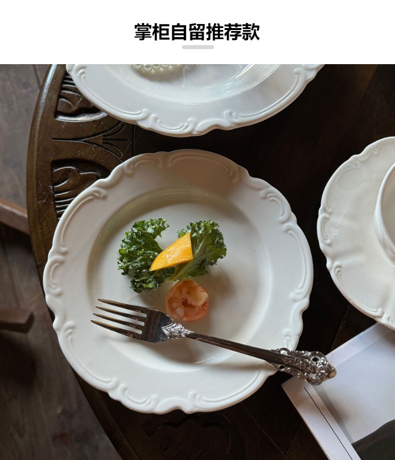 法式复古花边花卉浮雕陶瓷盘中古下午茶甜品盘子西餐家用盘子批发