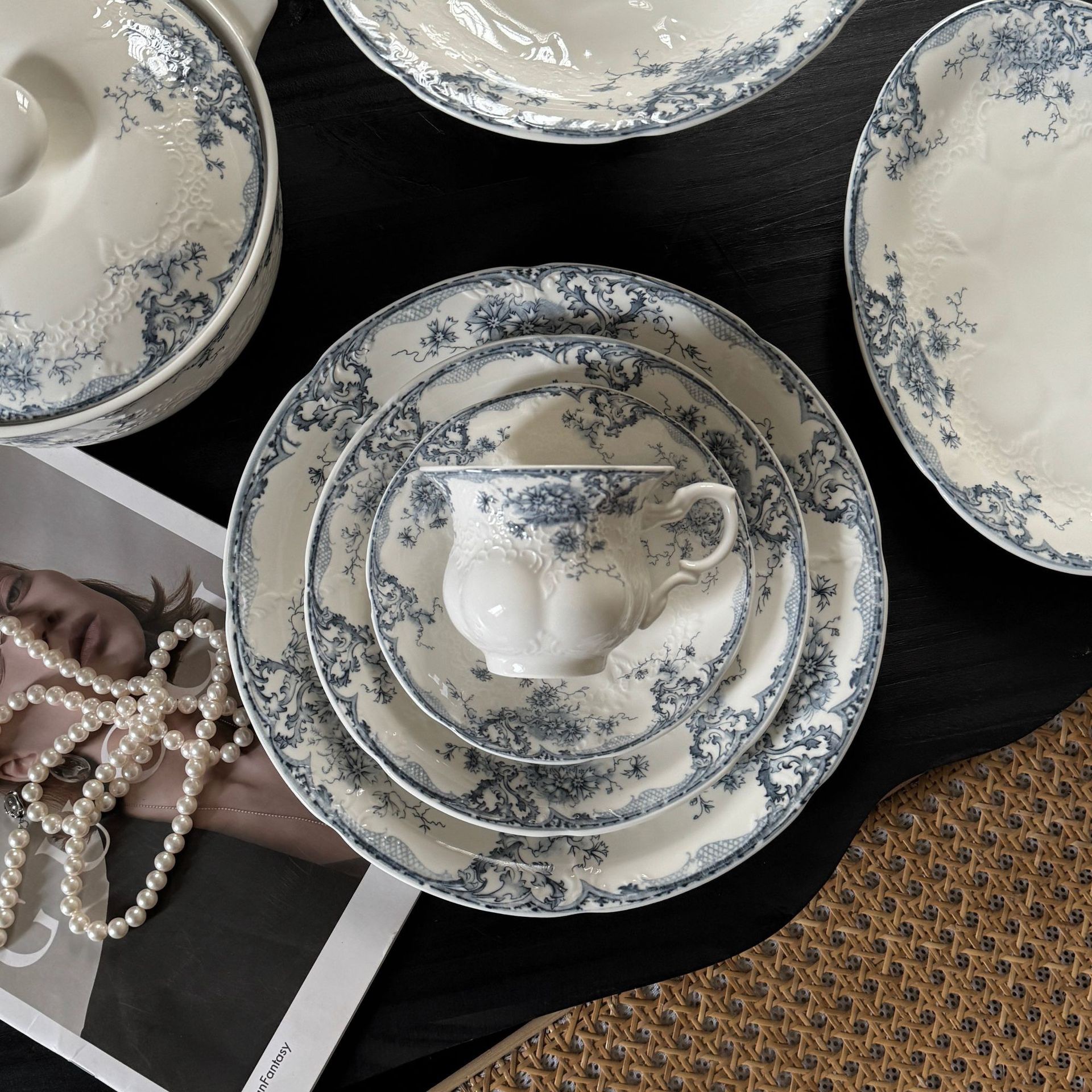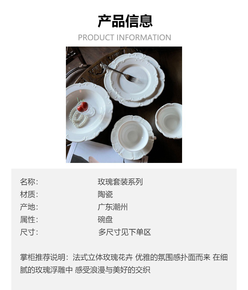 法式在逃公主绝美温柔浮雕花卉陶瓷餐盘碗杯盘子餐具套装现货批发