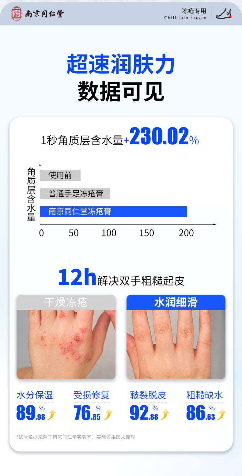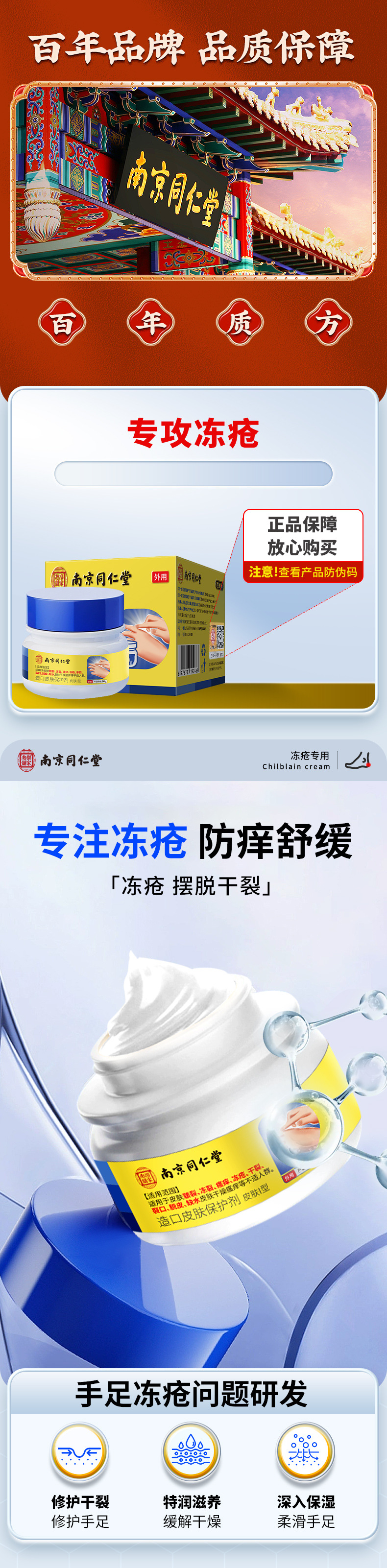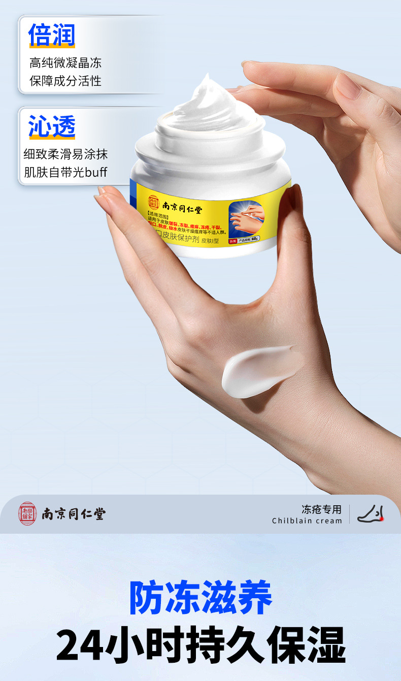 南京同仁堂凍瘡軟膏は、乾燥したかかと、ひび割れた手足、乾燥した肌を潤し、潤滑し、保湿し、かゆみを和らげる軟膏です。